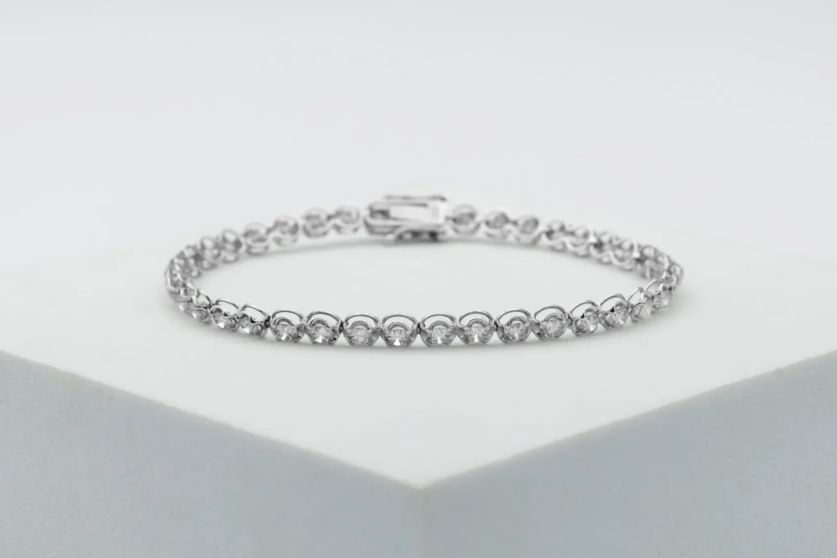 Weighing 7.50 grams, this bracelet offers the perfect balance of luxury and wearability — substantial yet effortlessly elegant. A truly versatile piece, it can be worn alone for understated glamour or layered for added brilliance, making it an essential addition to any fine jewellery collection.