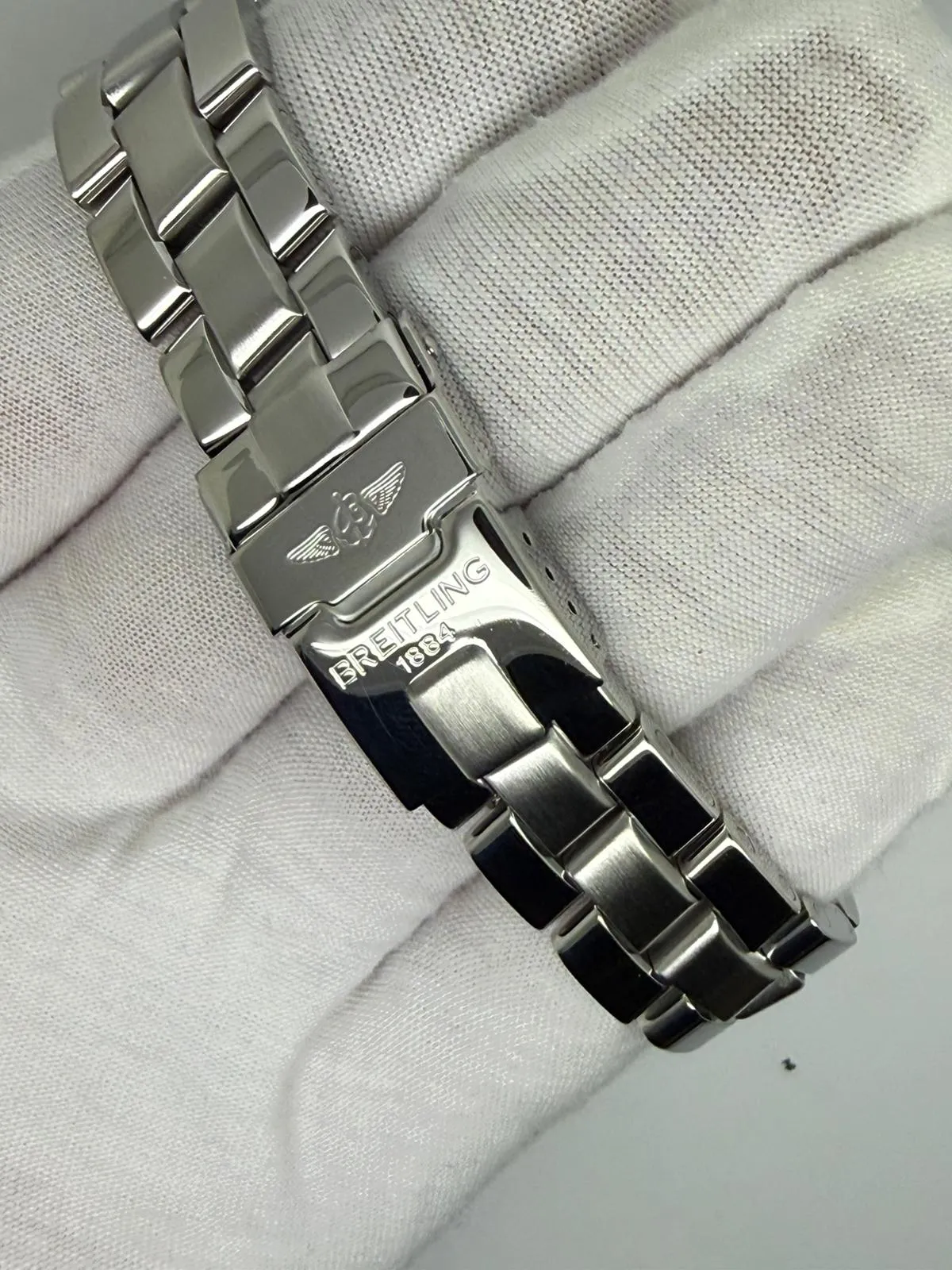 Fitted with its original Breitling stainless steel bracelet, the watch is powered by a precise quartz chronograph movement and has been fully serviced, supplied with a two-year guarantee. Presented in immaculate condition, this example comes as a full set with box and papers, making it an excellent and complete Breitling chronograph.