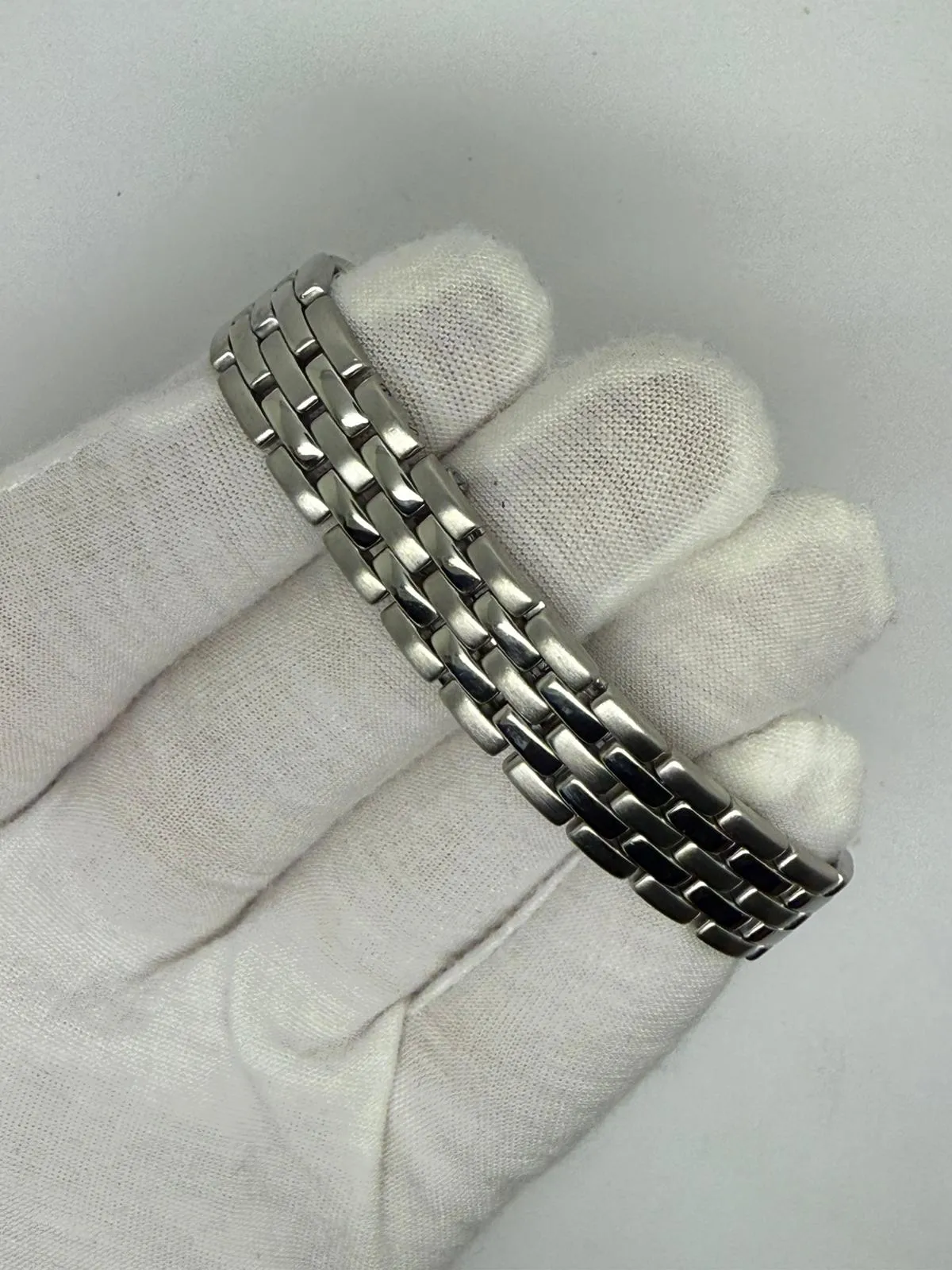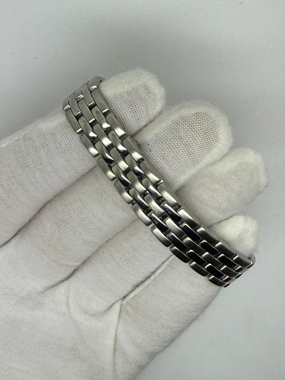 Powered by a reliable quartz movement, the watch has been fully serviced and is supplied with a two-year guarantee. Presented with a luxury presentation box, this Panthère Mini offers timeless Cartier elegance in a beautifully compact and wearable size.