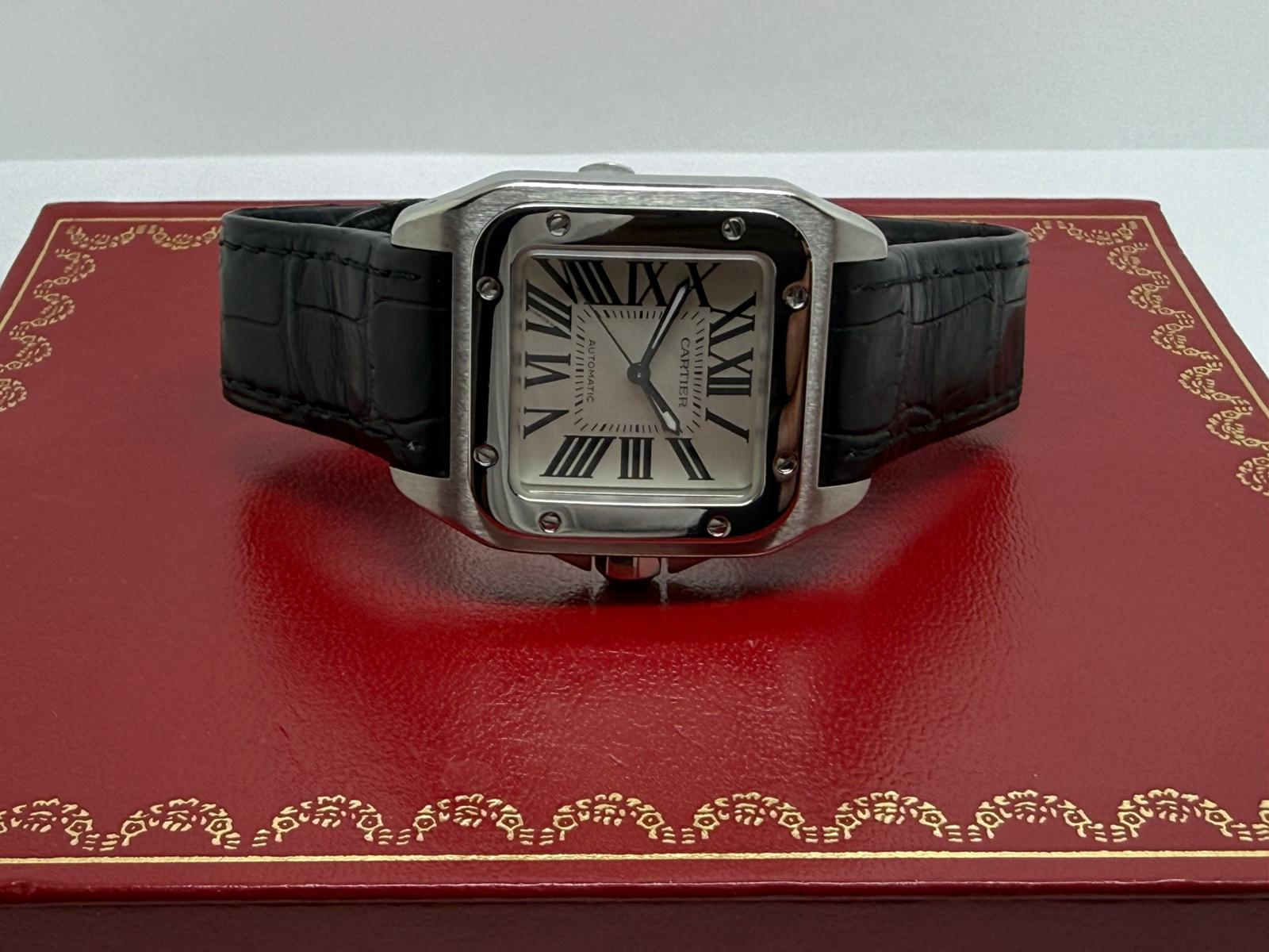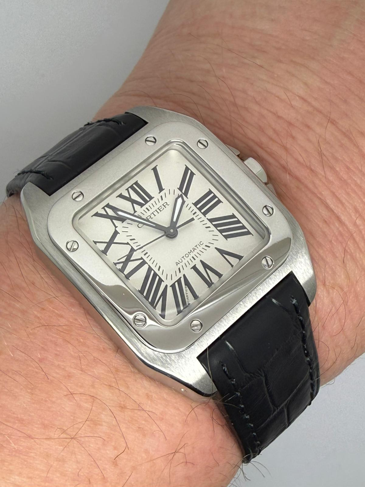 This 2018 Cartier Santos 100, reference 2878, features the bold and instantly recognisable 33x44mm stainless steel case, a modern classic within the Santos collection. Powered by an automatic movement, this model offers Cartier’s signature blend of elegance and strong wrist presence.