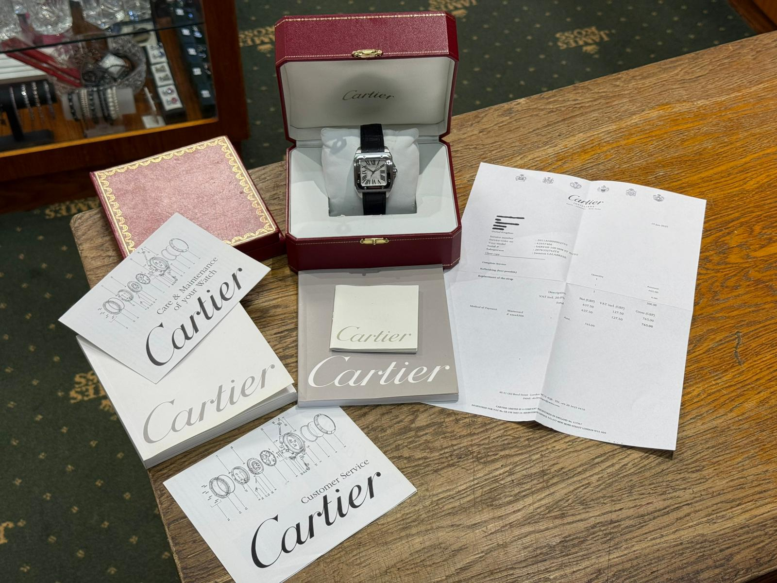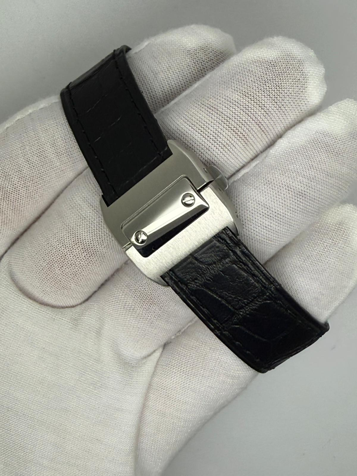 The watch has been fully serviced by Cartier in June 2025, including the fitting of a brand new leather strap, and has remained unworn since service. Presented in immaculate condition, it is supplied with box and papers, along with Cartier service papers, and comes with a two-year guarantee for complete peace of mind.