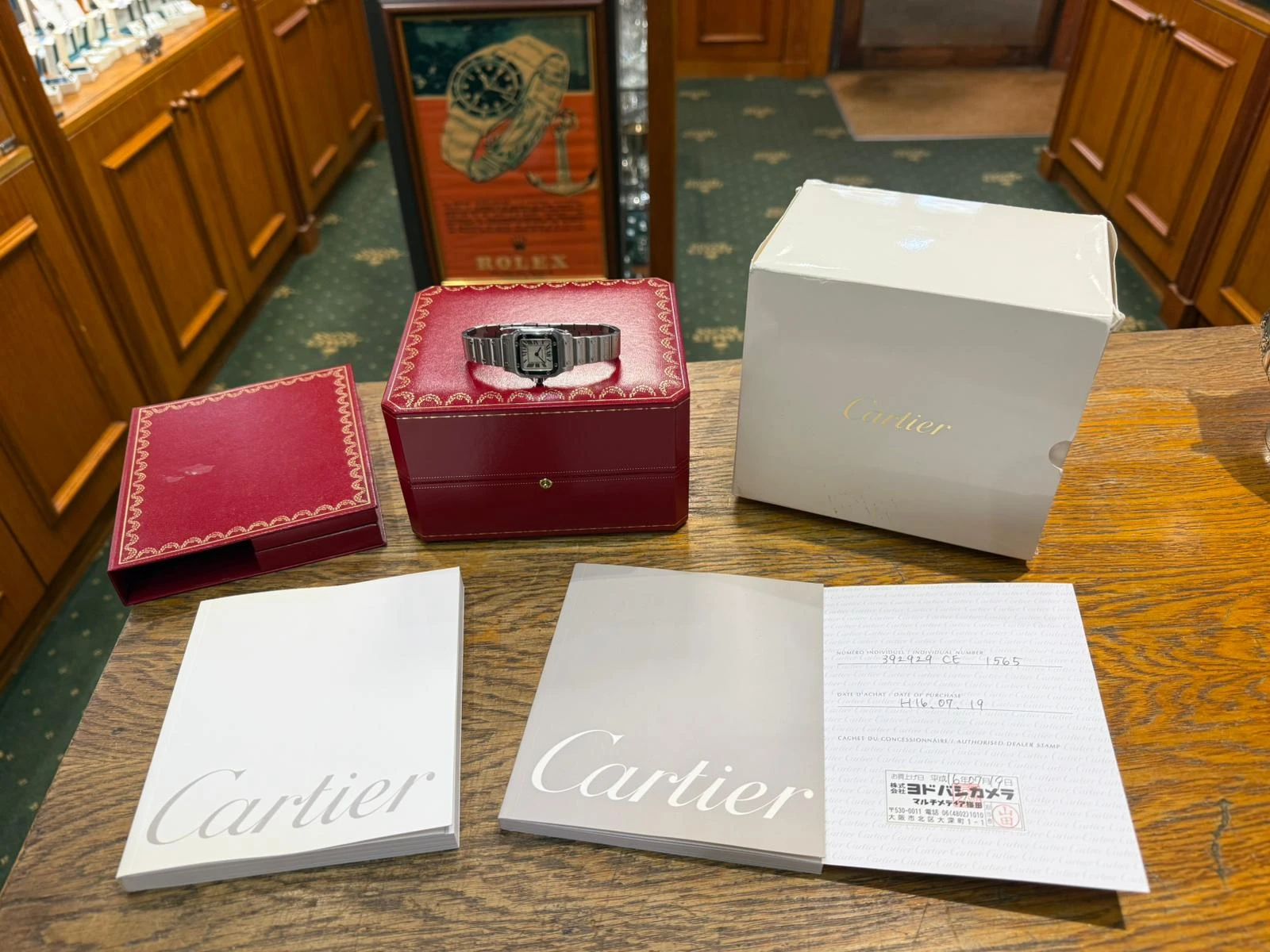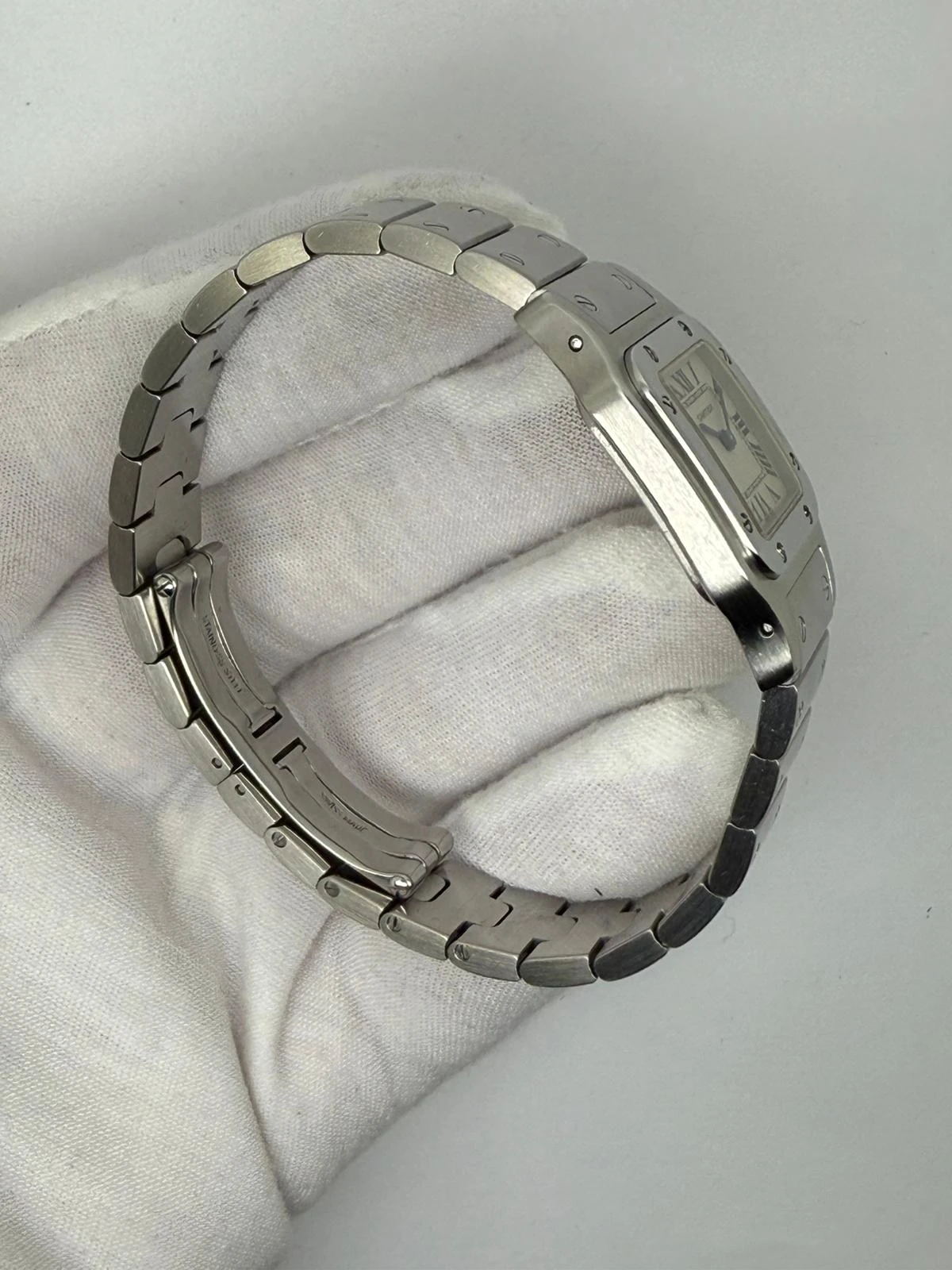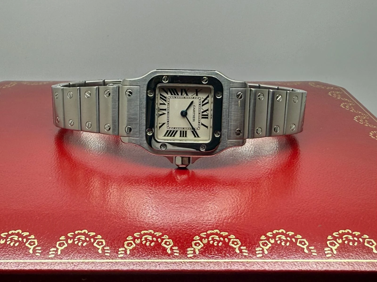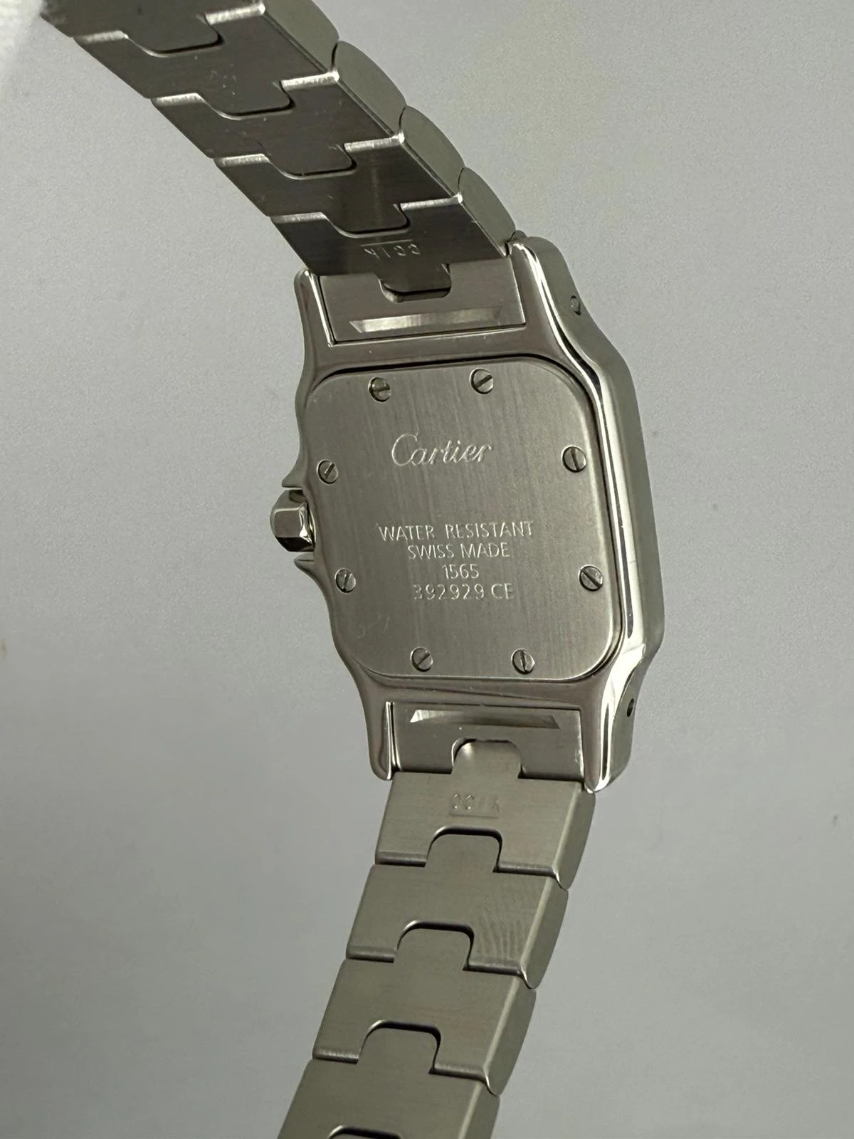 This 2019 Ladies Cartier Santos Galbée, reference 1565, features a refined 24×35mm stainless steel case in the signature curved Santos design. Presented in immaculate condition, it comes as a full set with Cartier box and papers, offering both elegance and reliability.