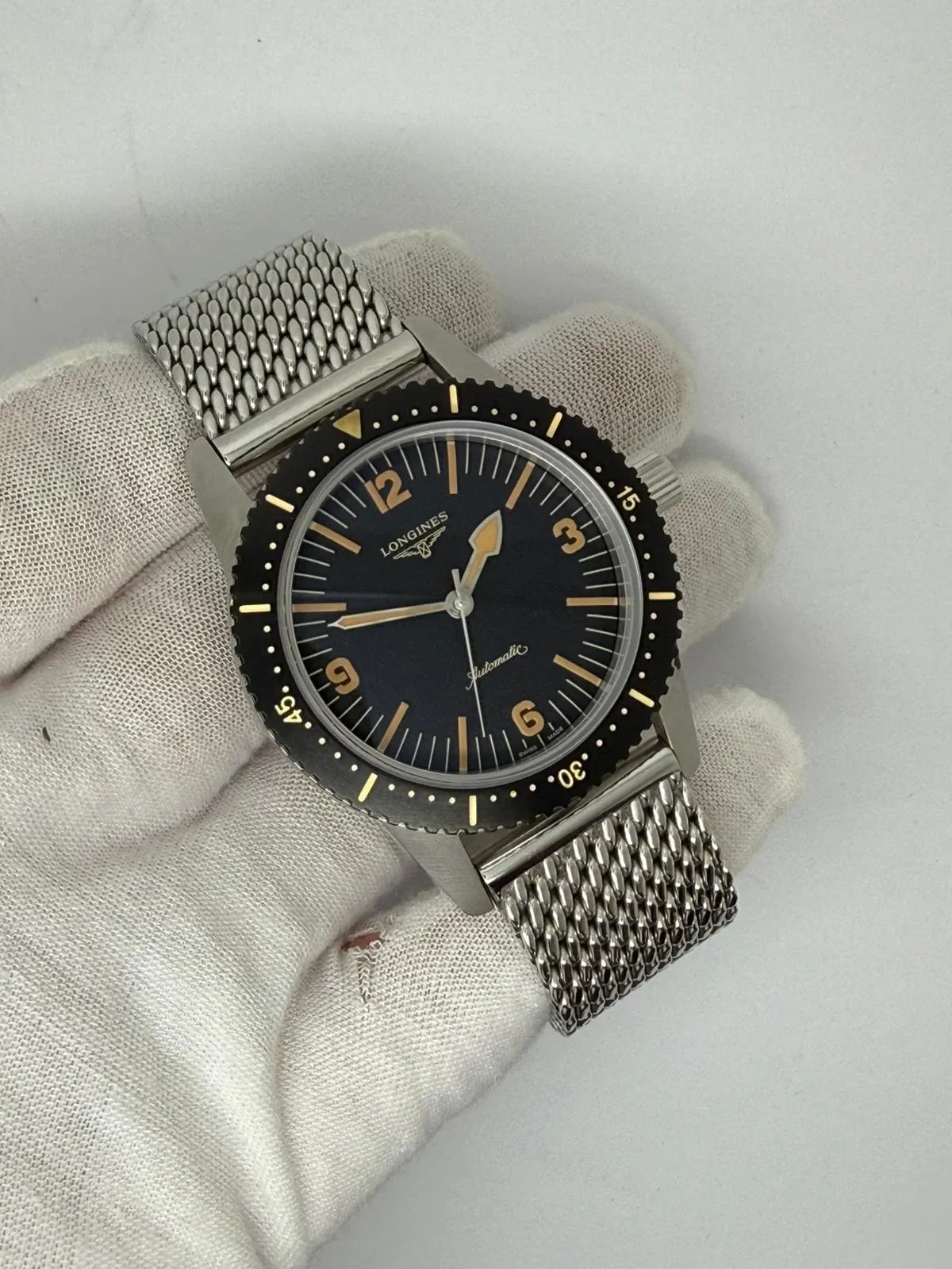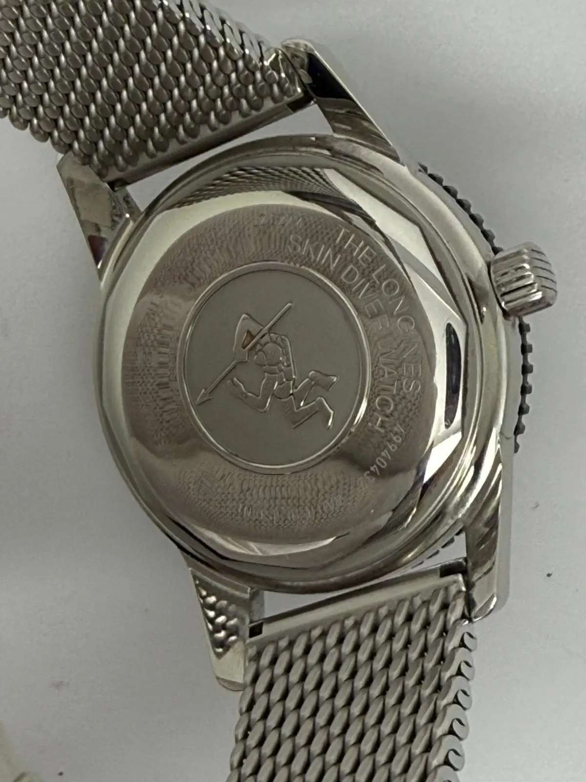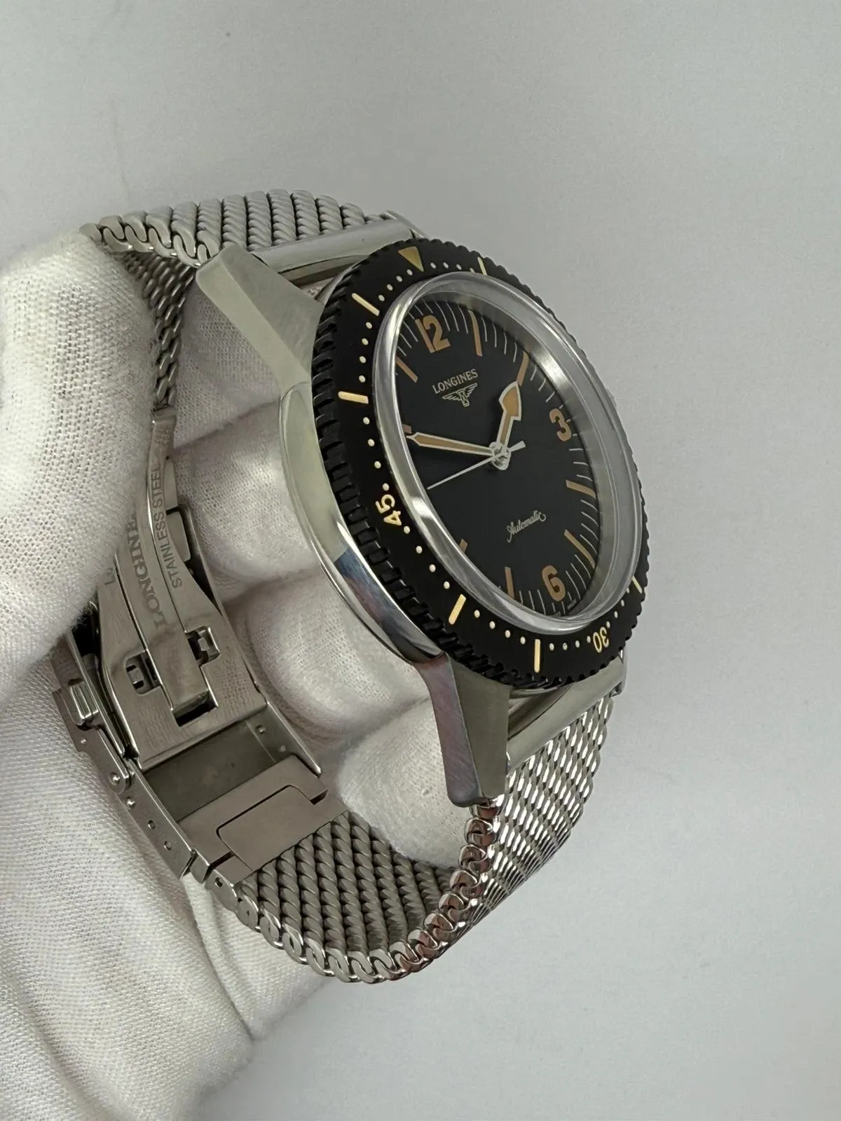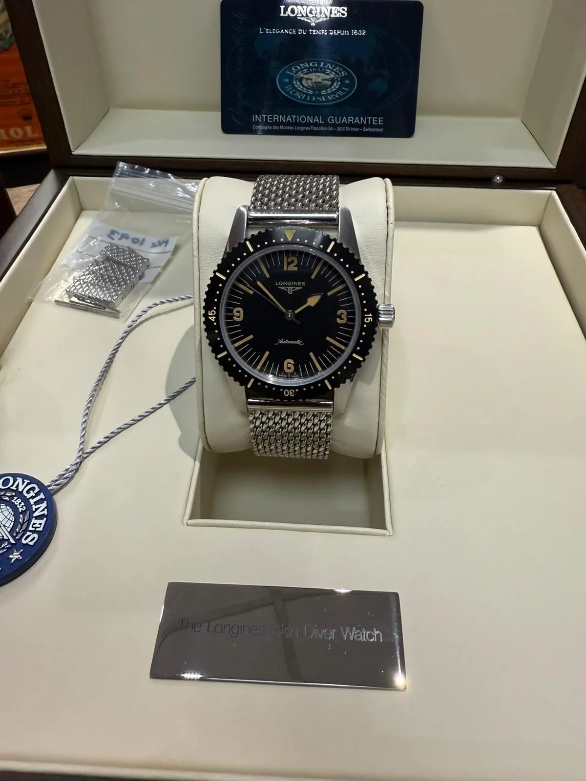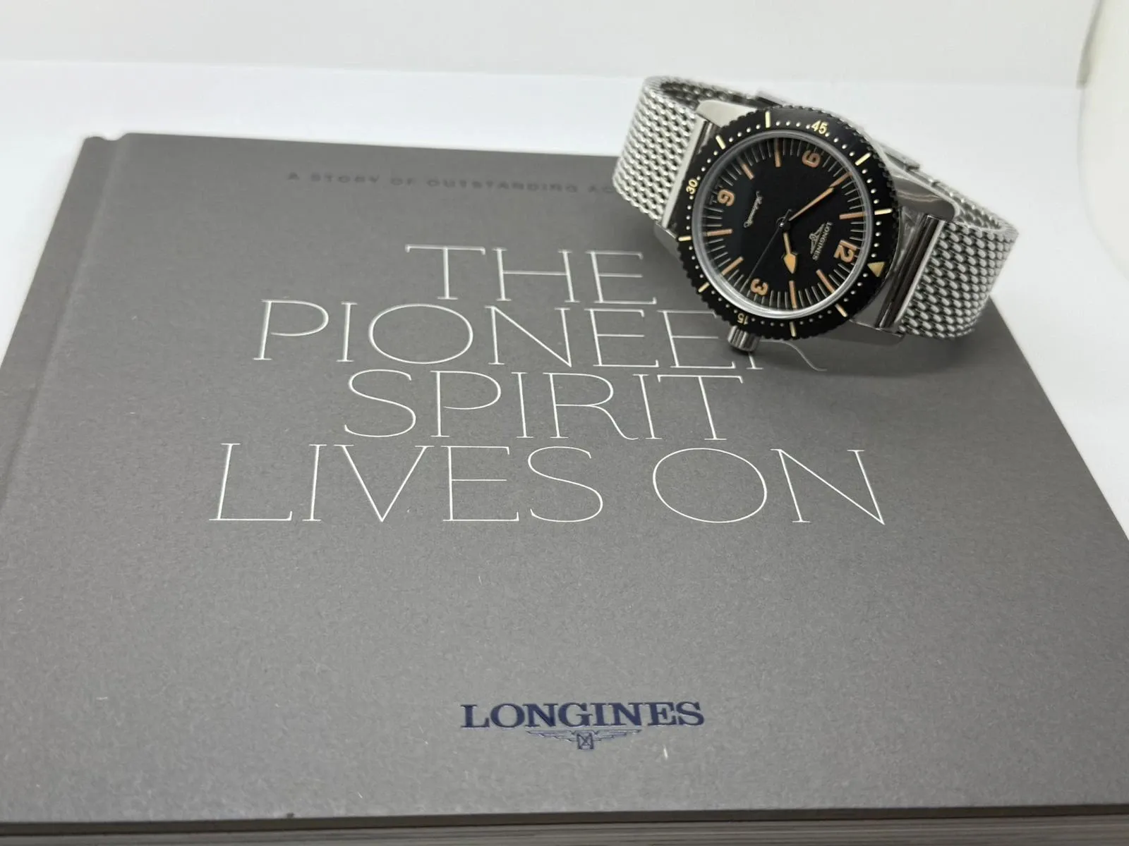 This 2023 Longines Heritage Skin Diver Automatic, 42mm, is in immaculate condition and comes as a full set, including the large luxury presentation box, papers, and the hardback Sports Legends book. Now discontinued, this model has become increasingly difficult to find, especially in this condition.