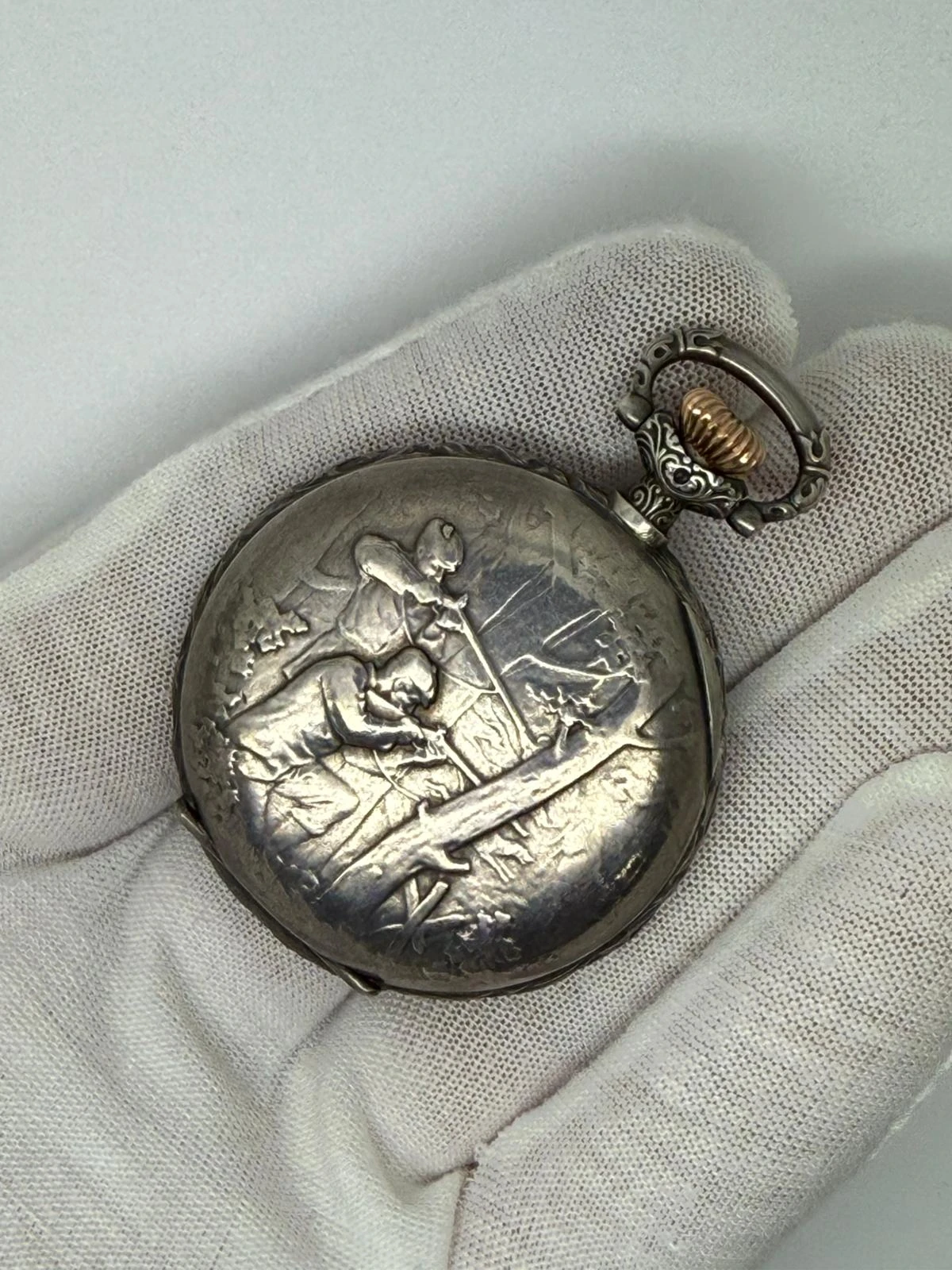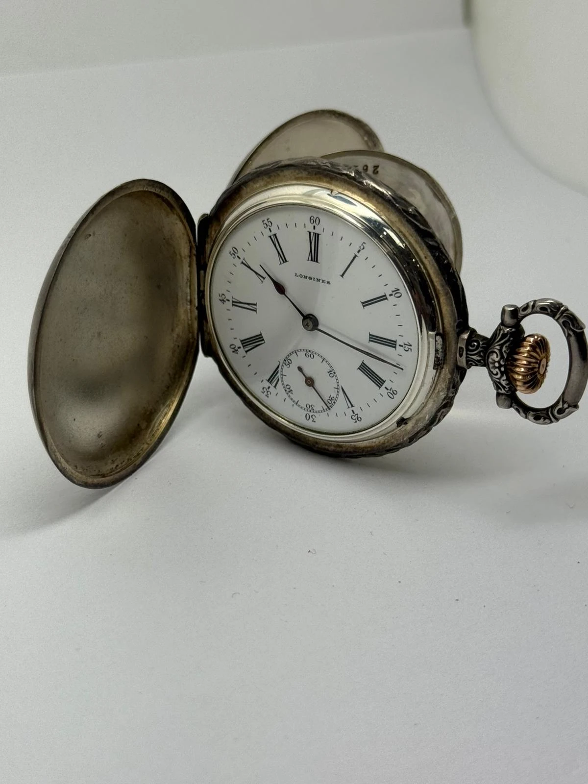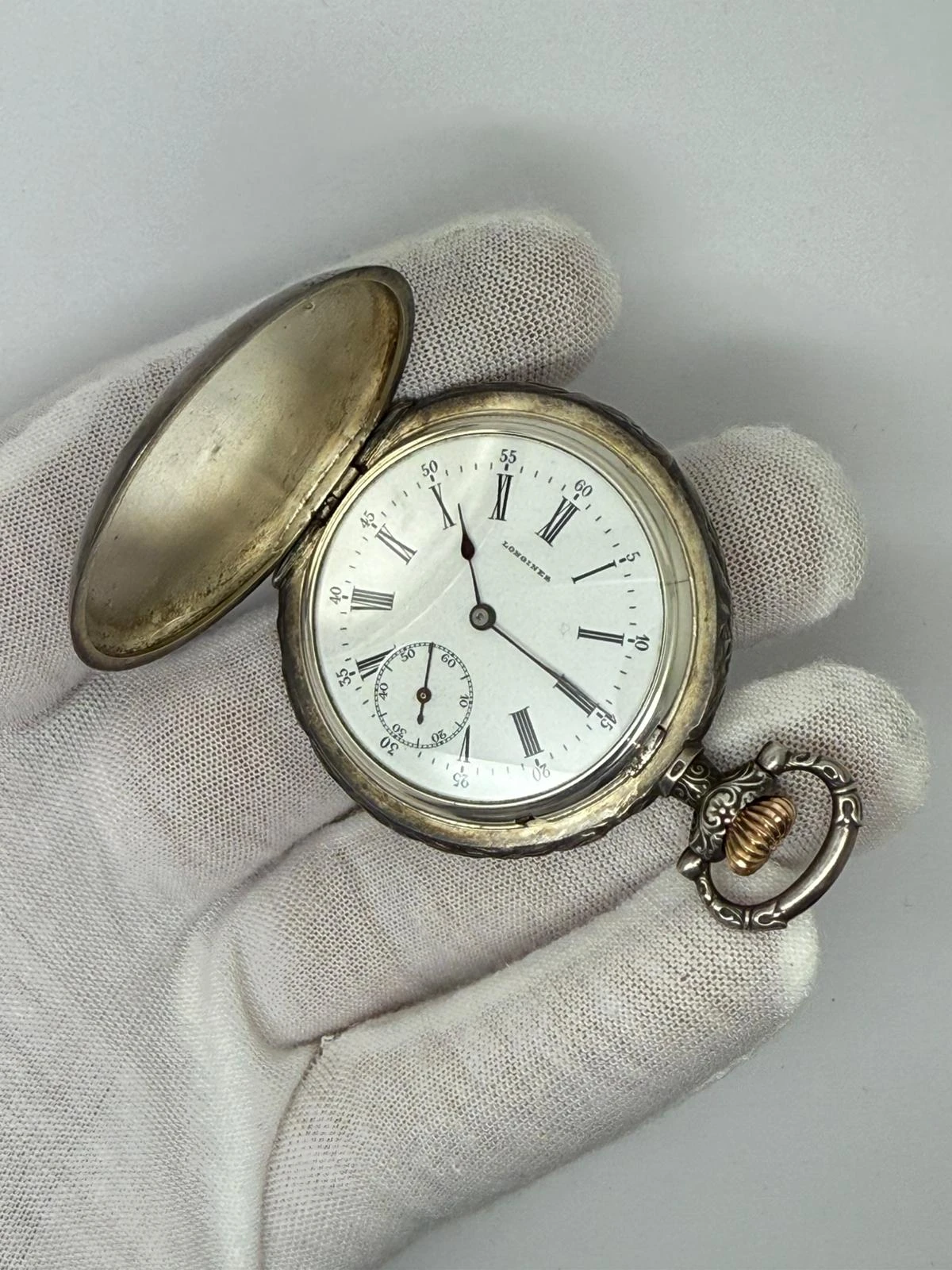 This Circa 1911 Longines Hunter Pocket Watch showcases truly exquisite early 20th-century craftsmanship, with an exceptionally detailed and beautifully preserved case — a genuine work of art. The movement has been fully serviced and is supplied with a two-year guarantee, offering both reliability and historical charm.