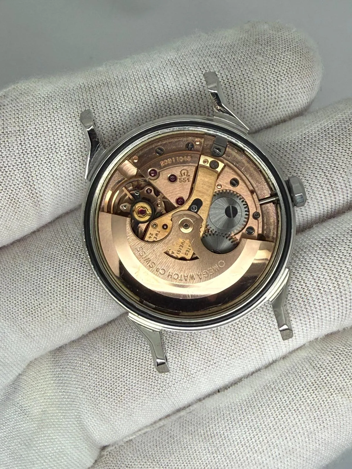 Powered by the Calibre 551 automatic chronometer movement, the watch has been fully serviced and is supplied with a two-year guarantee. Presented in excellent condition, it is fitted with a new top quality Hirsch Merino strap and comes complete with a vintage Omega presentation box and outer box, making it a superb collector’s piece.