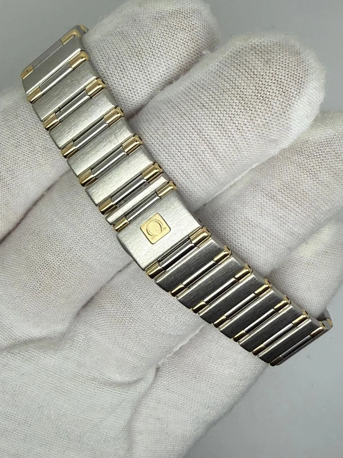 Fitted with its original Omega stainless steel and 18ct yellow gold bracelet, the watch is powered by the reliable Calibre 1456 quartz movement, which has been fully serviced and is supplied with a two-year guarantee. Presented in excellent condition, it comes as a complete set with box, papers, wallet, booklet and travel pouch, making it a superb ladies’ Omega.