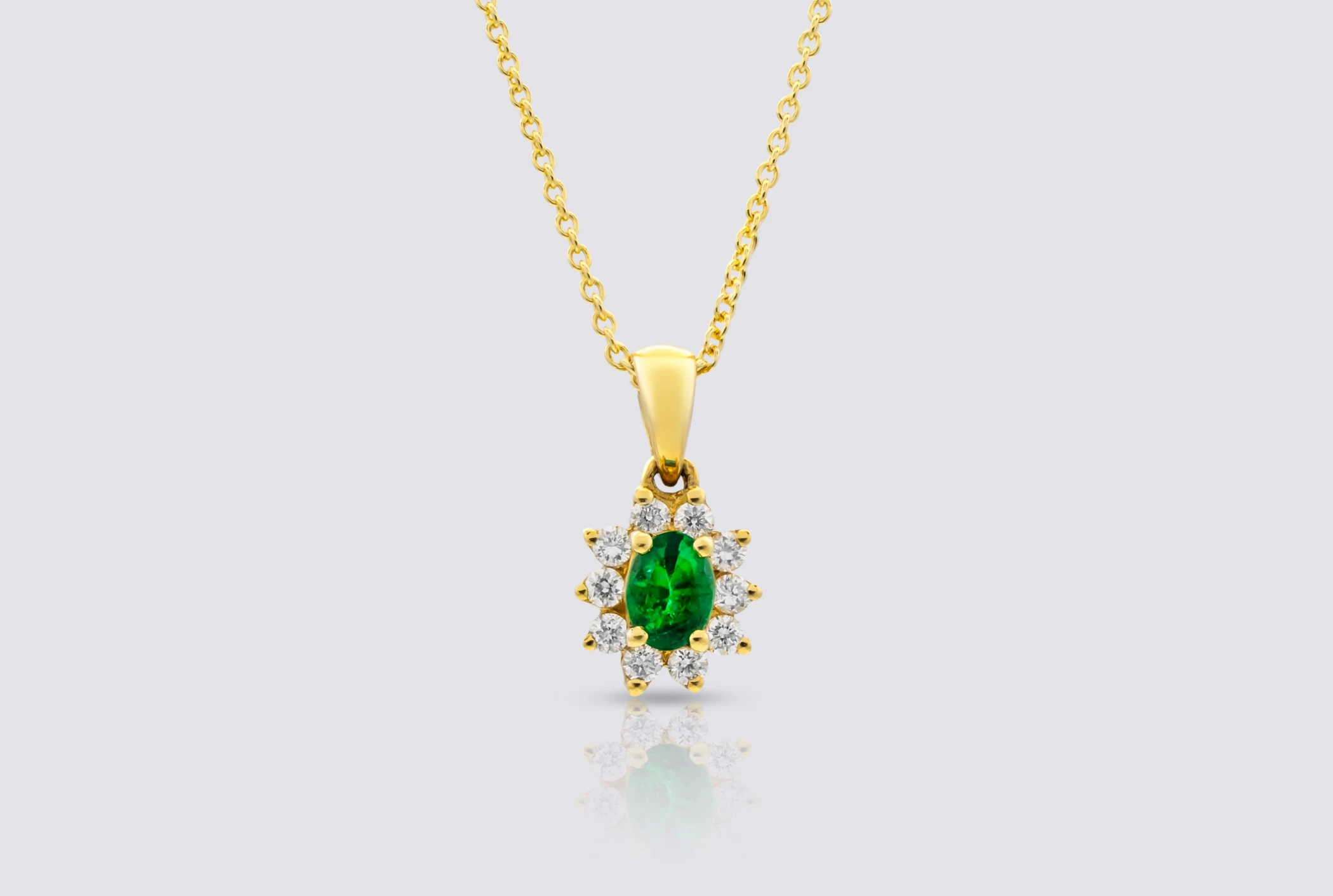 9ct Yellow Gold Emerald & Diamond Necklace – Oval Pendant