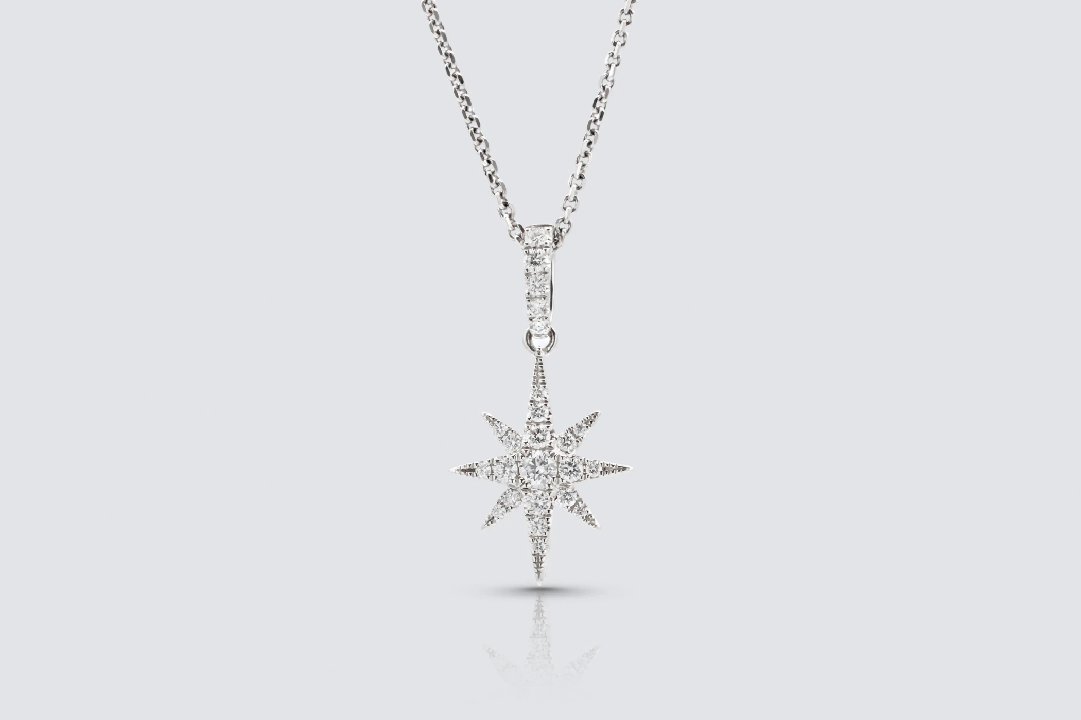 18ct White Gold Diamond Star Pendant Necklace 0.23ct