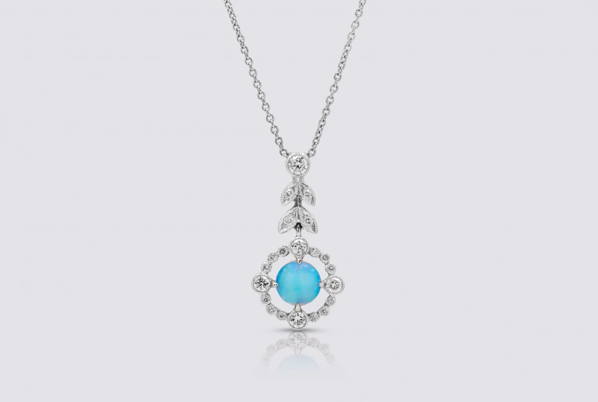 18ct White Gold Opal and Diamond Necklace 2.95ct Cabochon Opal & 1.13ct Brilliant Cut Diamonds