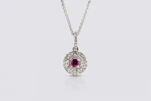 18ct White Gold Round Ruby and Brilliant Cut Diamond Pendant Necklace