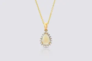 Yellow Gold Opal and Diamond Claw Set Necklace – 0.55ct Pear Opal & Brilliant Cut Diamonds