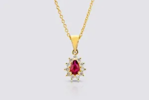 9ct Yellow Gold Ruby and Diamond Pear-Shaped Pendant Necklace 0.28ct