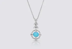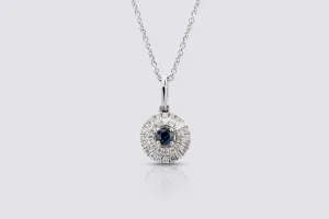 18ct White Gold Round Sapphire and Brilliant Diamond Pendant Necklace