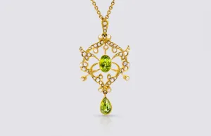 Antique 15ct Yellow Gold Peridot and Pearl Necklace
