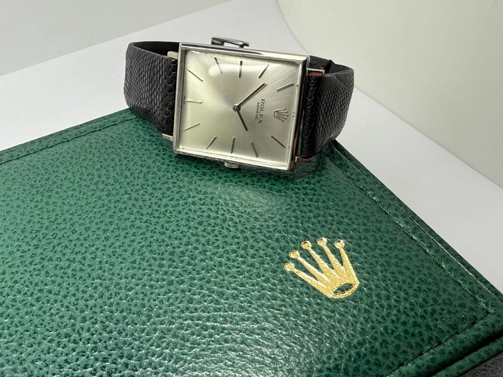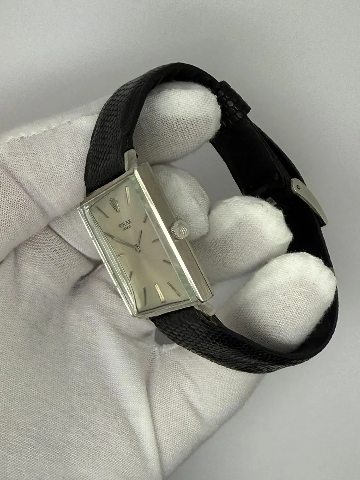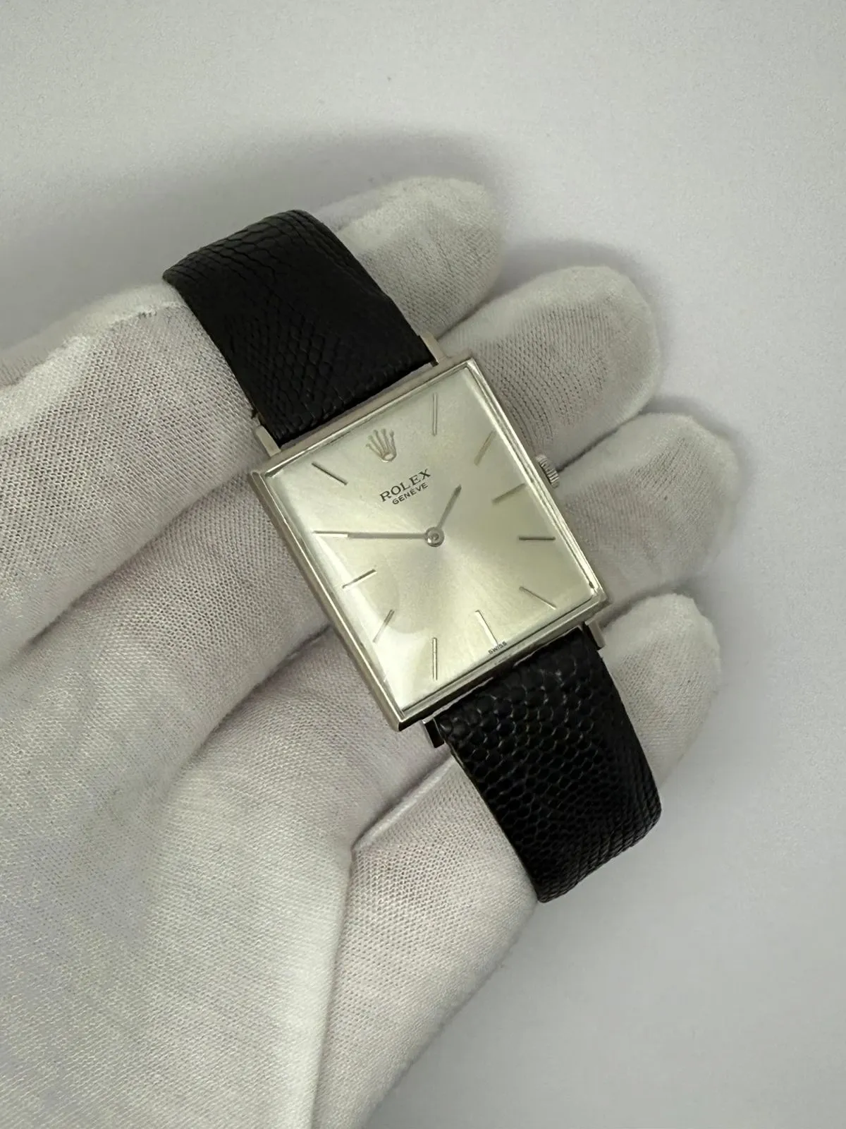 This elegant 1960s Rolex Cellini, reference 3607, is a beautifully preserved example of Rolex’s most refined dress watch line. Crafted from 18ct white gold, the distinctive 30×26mm case offers a sophisticated rectangular profile that sits beautifully and lightly on the wrist, a true symbol of understated luxury.