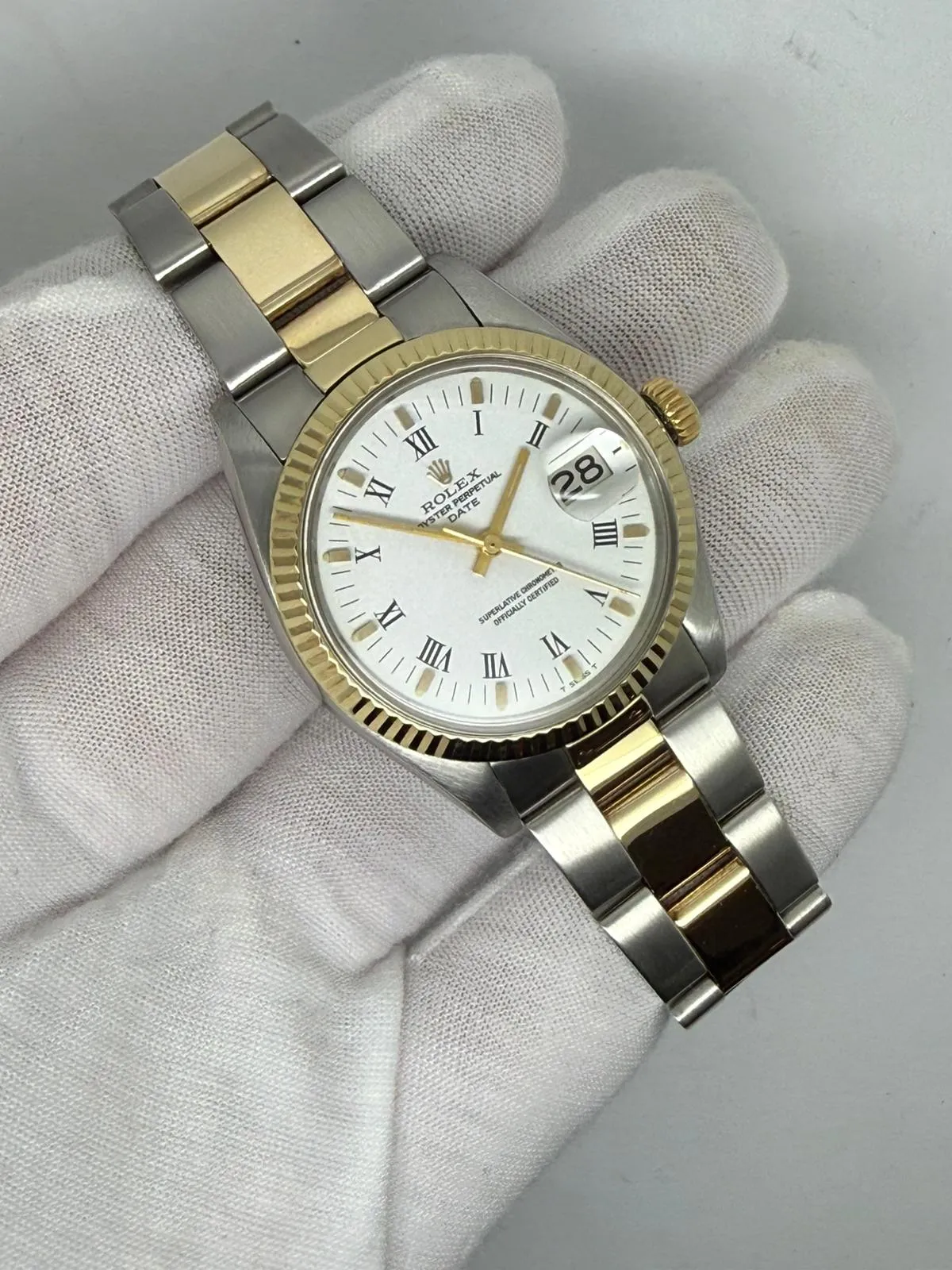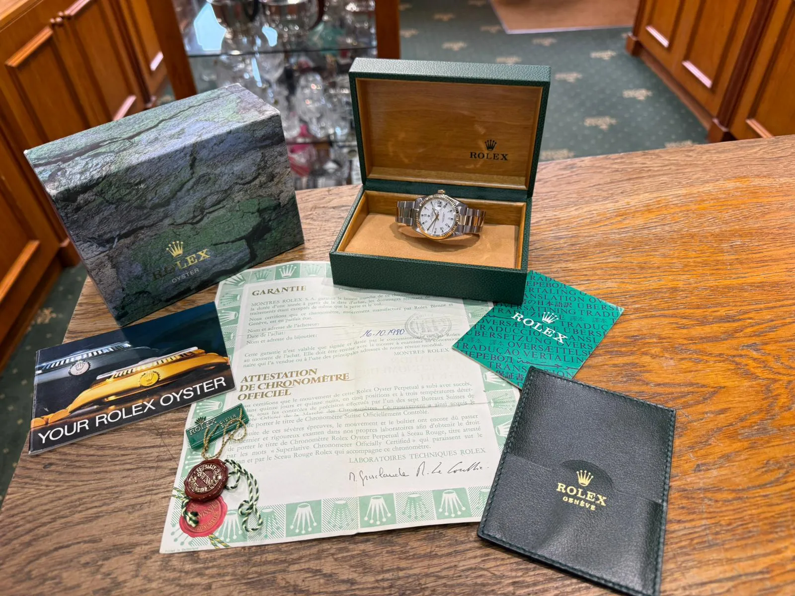This superb 1980 Rolex Oyster Perpetual Date, reference 1500, features a classic 34mm stainless steel and 18ct yellow gold case paired with the timeless Rolex Oyster bracelet. The Oyster Perpetual Date is renowned for its balanced proportions, reliability, and understated vintage Rolex styling.