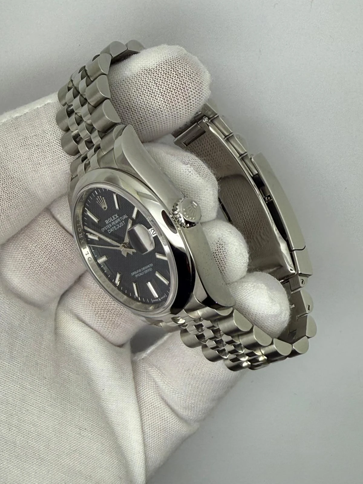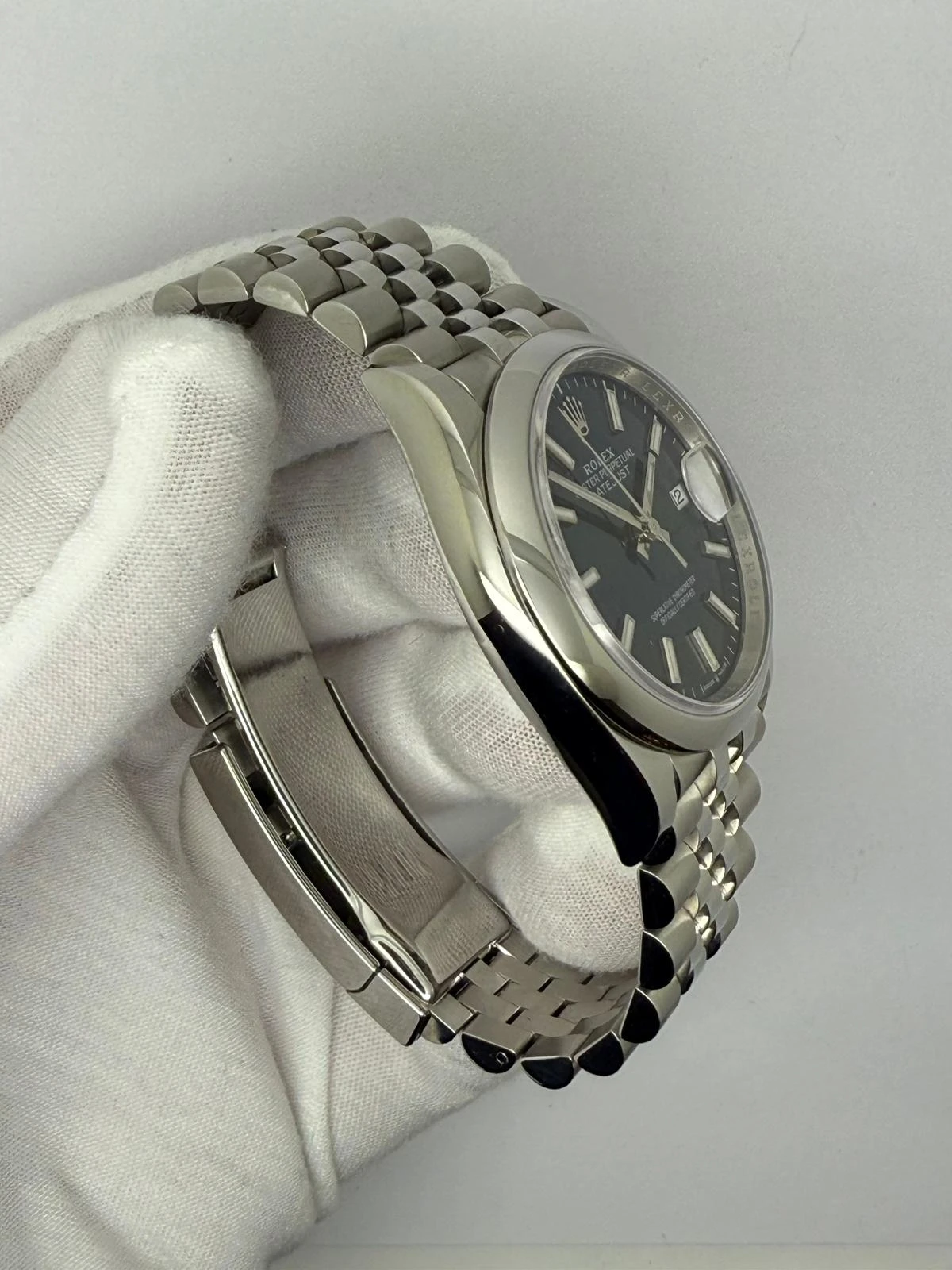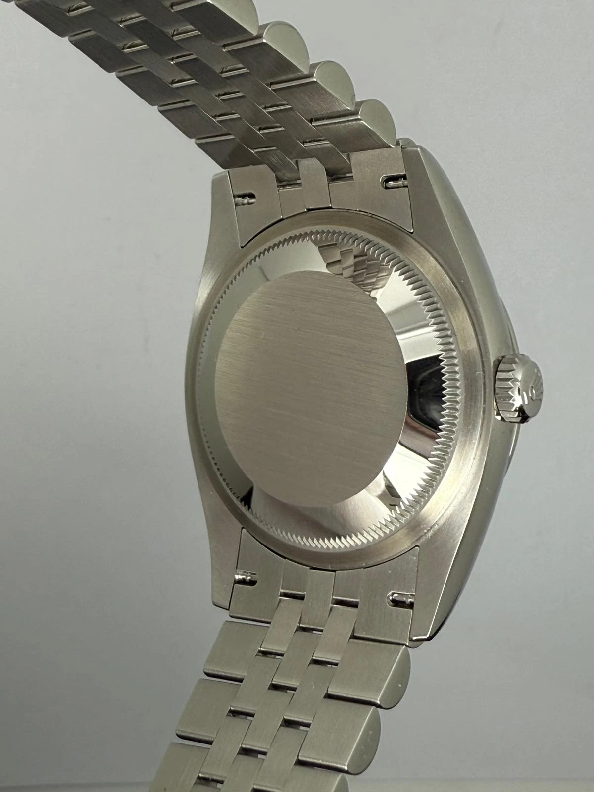 This brand new 2025 Rolex Oyster Perpetual Datejust, reference 126200, perfectly showcases the elegance and precision that define one of Rolex’s most iconic collections. Crafted from 904L stainless steel, the 36mm case is fitted with a smooth polished bezel and paired with a Jubilee bracelet, offering both comfort and timeless style.