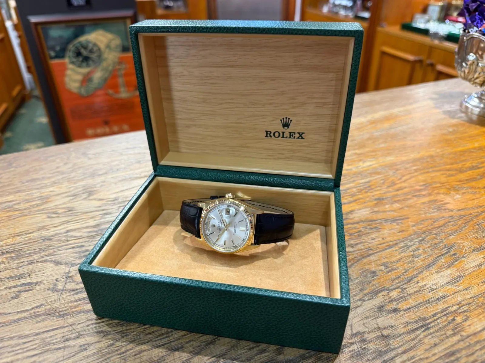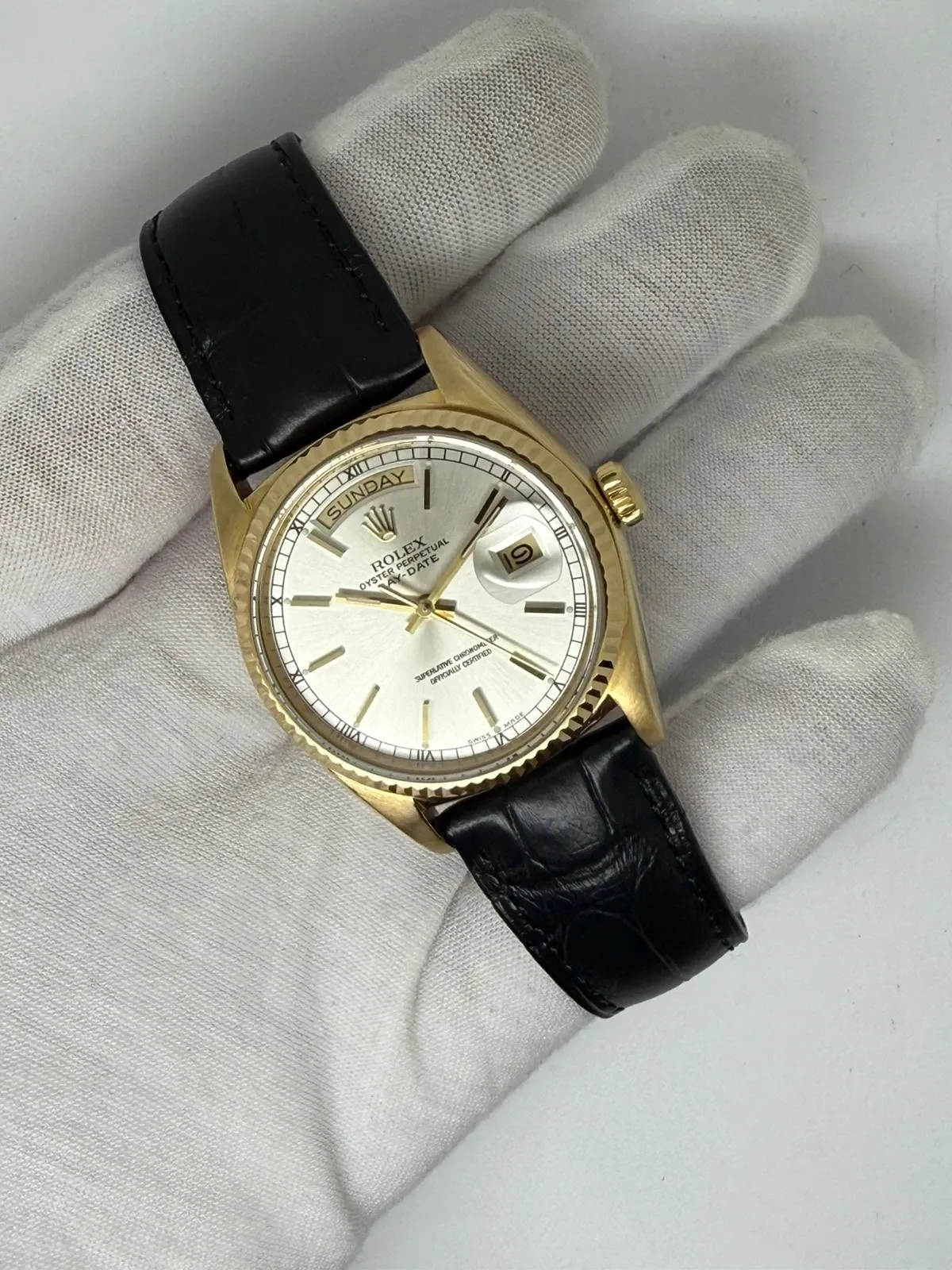 Fully serviced and supplied with a two-year guarantee, this Day-Date comes complete with a Rolex presentation box and certificate of authenticity, making it a superb example of Rolex’s most prestigious model.