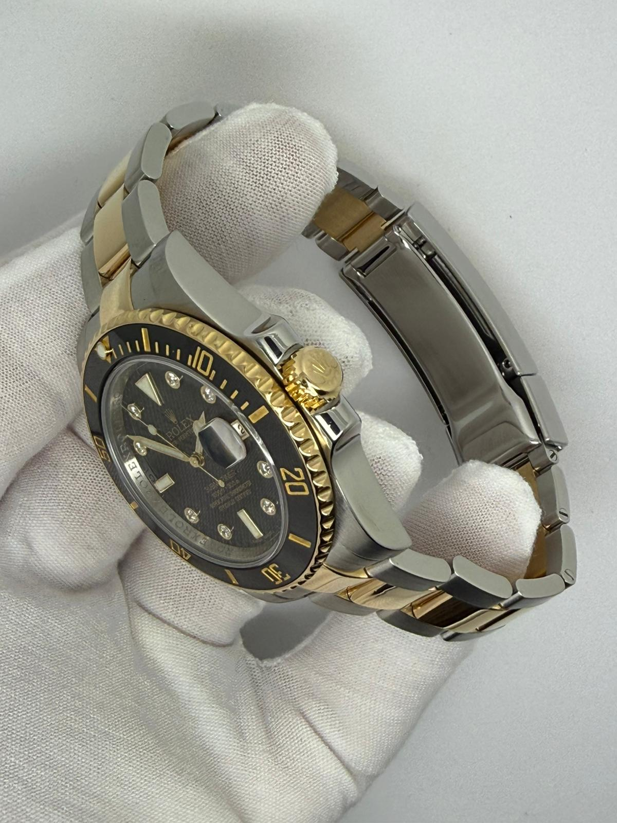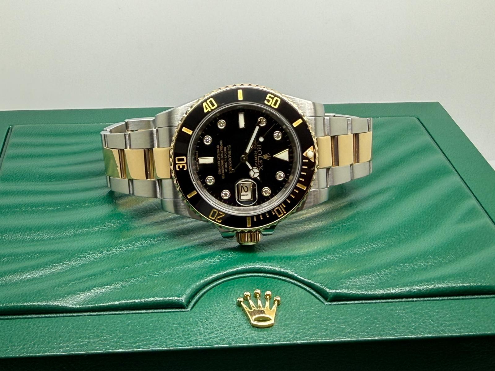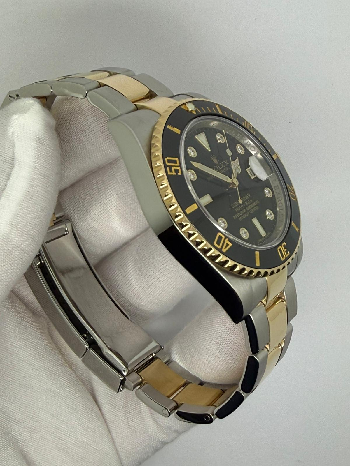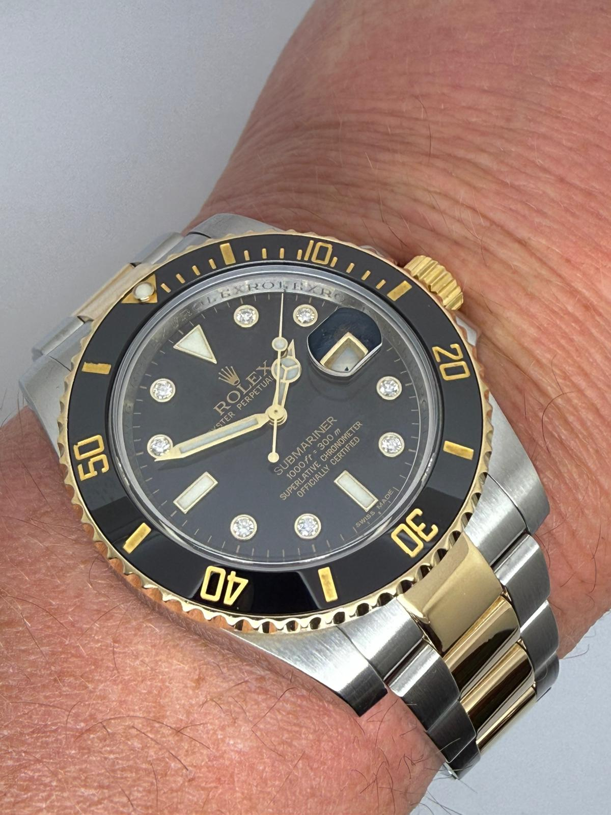 Ultra Rare, this exceptional 40mm Rolex Submariner Date 2009, reference 116613LN, features the highly sought-after factory diamond dial, a configuration estimated to have been produced in extremely limited numbers — believed to be up to 5,000 pieces — making it a true collector’s example. Crafted in stainless steel and 18ct yellow gold, this iconic 40mm sports model combines Rolex durability with elevated luxury.