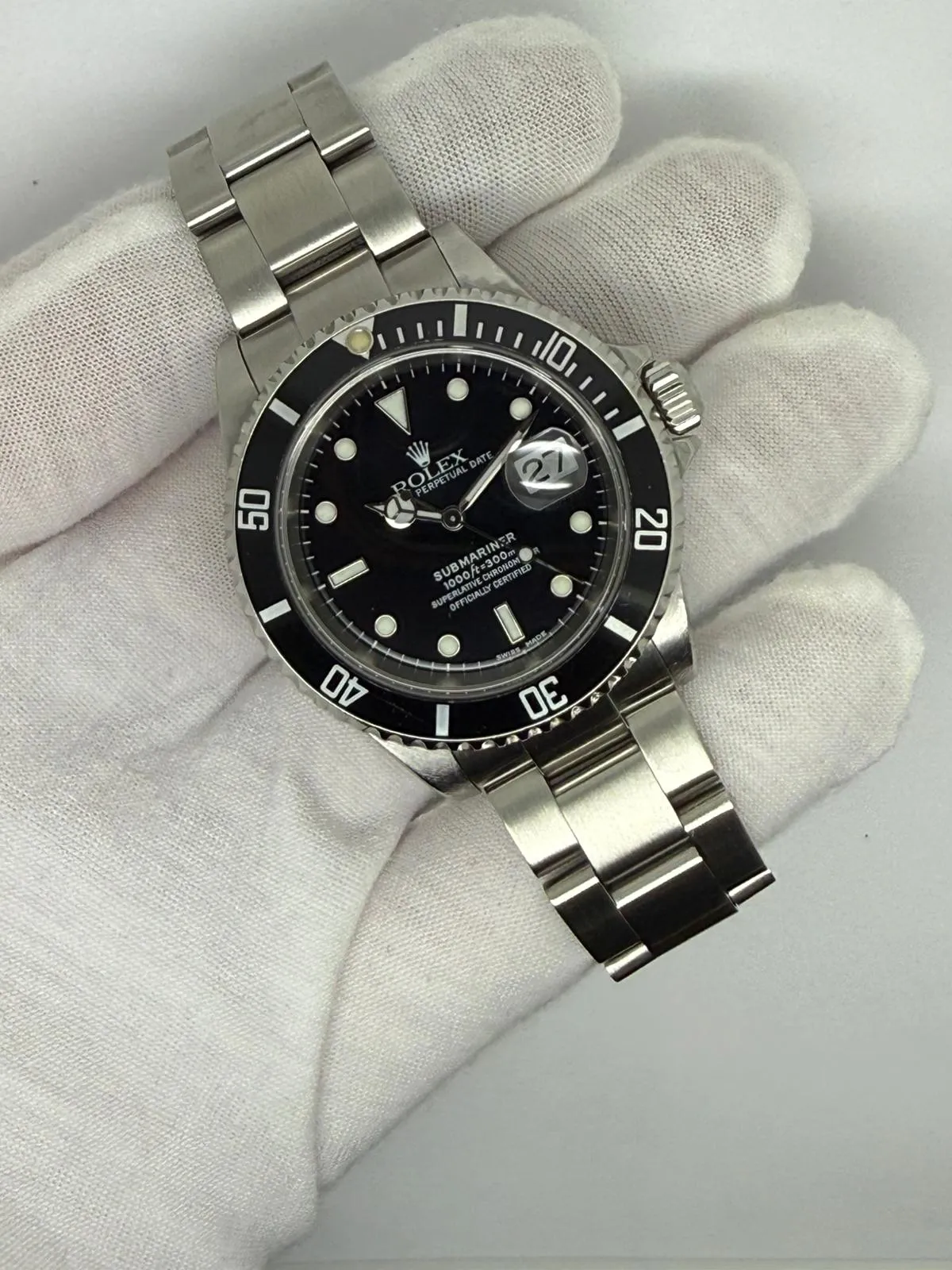 This classic 2002 Rolex Submariner Date, reference 16610, features the iconic 40mm stainless steel case with a timeless black dial and black bezel, representing one of the most recognisable and enduring Rolex sports models.
