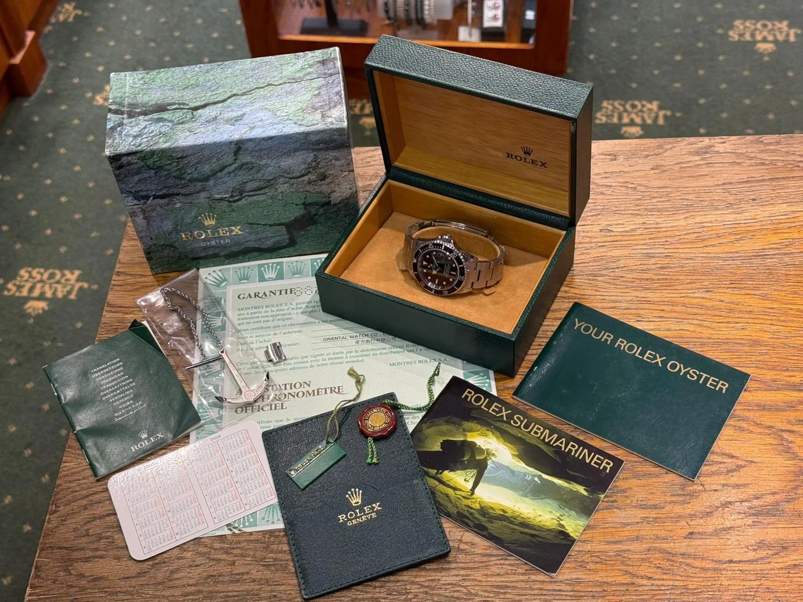 Powered by the reliable Calibre 3135 automatic movement, the watch has been fully serviced and is supplied with a two-year guarantee. Presented in excellent condition, this example comes as a complete collectors set with box and papers, making it a highly desirable and versatile Submariner for both collectors and everyday wear.