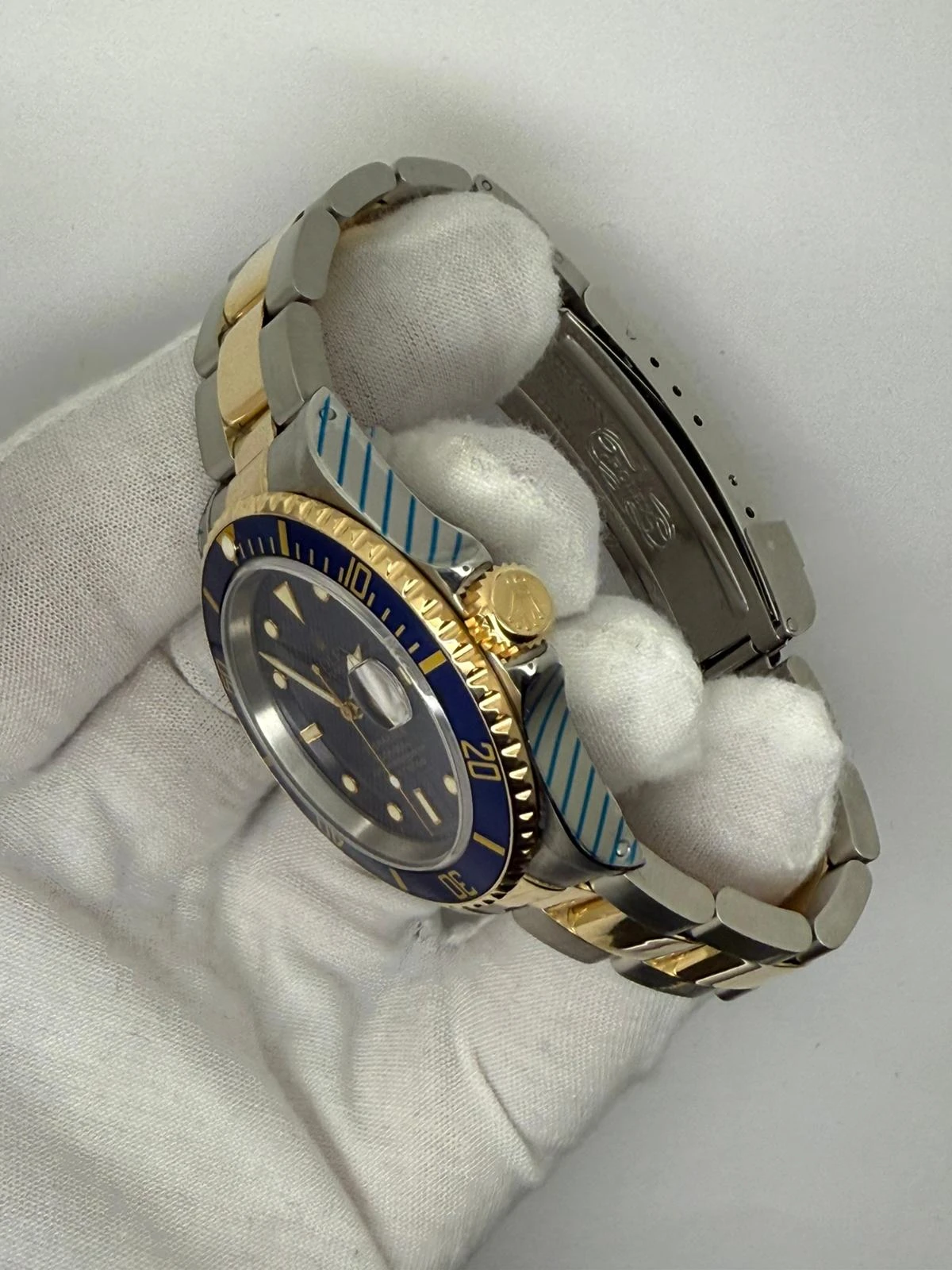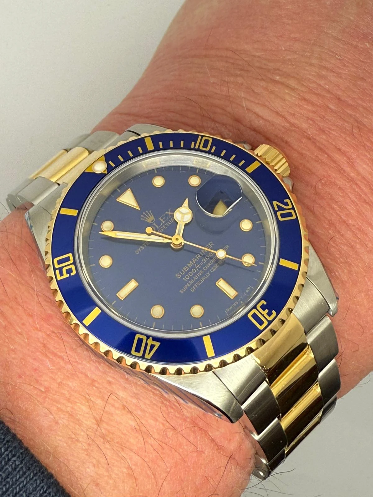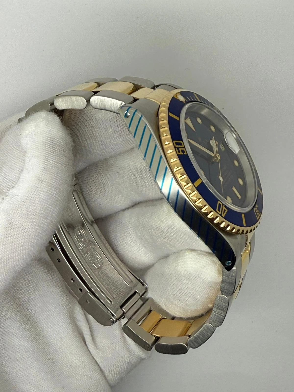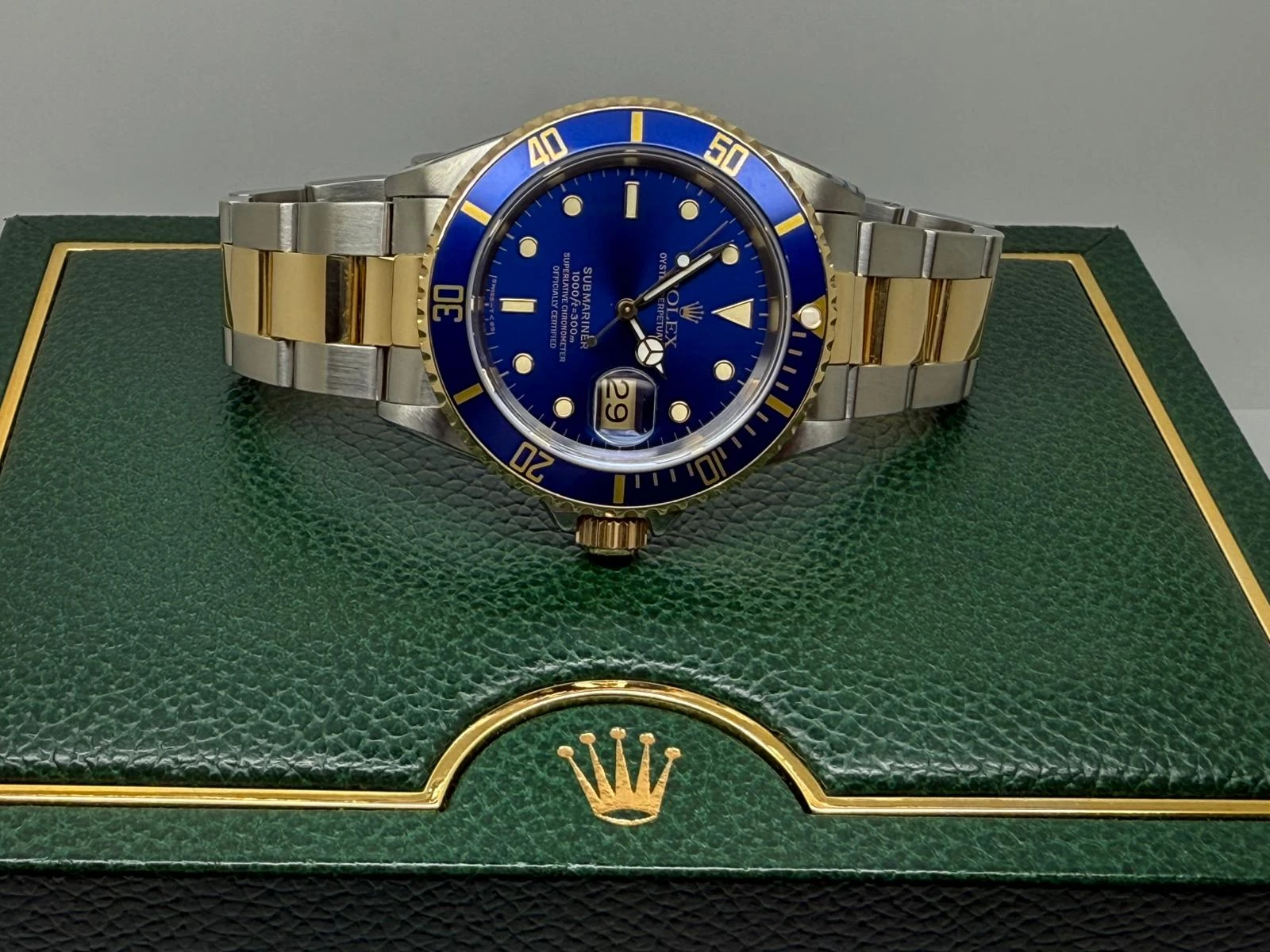This 1993 Rolex Submariner Date, reference 16613, is an exceptional example of the iconic two-tone Submariner, combining stainless steel with 18ct yellow gold for a timeless and luxurious aesthetic. The watch features the highly sought-after blue dial and matching blue bezel, a signature look that has made the 16613 one of the most recognisable and collectible Submariners ever produced.