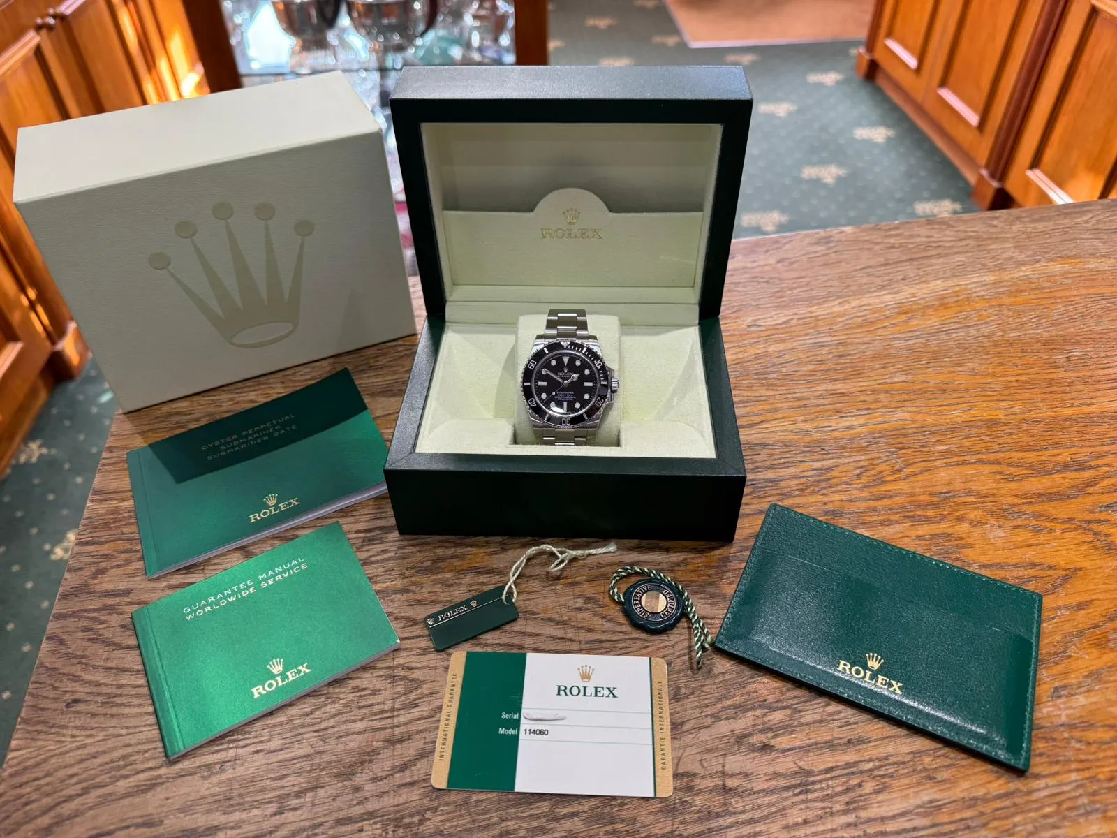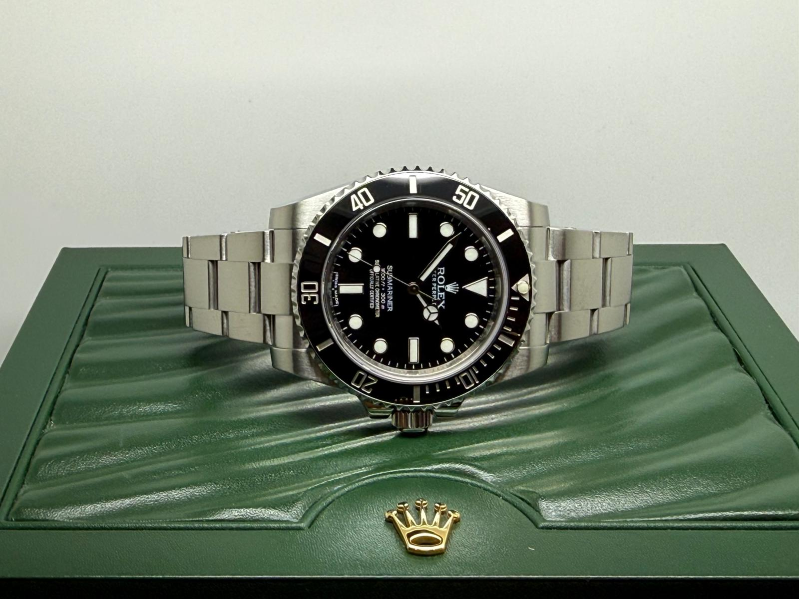 Presented in immaculate condition, this example is supplied as a full set with box and papers. It has been fully serviced and comes with a two-year guarantee, making it an excellent opportunity to acquire the final-generation 40mm Submariner No Date in outstanding condition.