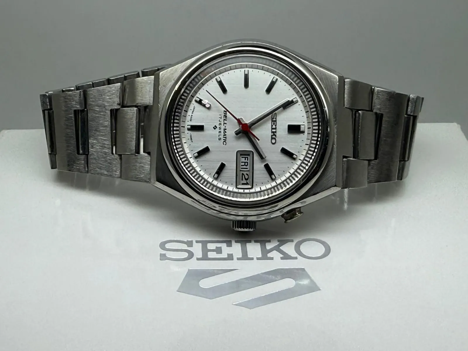 This 1974 Seiko Bell-Matic, reference 4006-6031, is a superb example of one of Seiko’s most innovative vintage creations. Featuring an integrated mechanical alarm function, the Bell-Matic was groundbreaking in its era and remains highly collectible among enthusiasts today.
