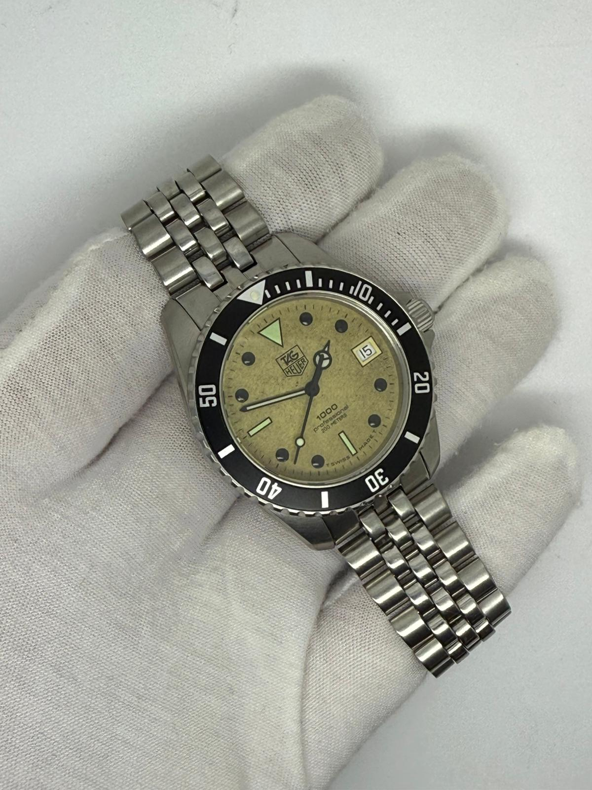 This iconic 1980s TAG Heuer 1000 Professional ‘Nightdiver’, reference 980.113N, features a 36.5mm stainless steel case and the unmistakable fully luminescent dial, earning it legendary status among collectors. Famously worn by James Bond (Timothy Dalton) in The Living Daylights, this model is one of the most recognisable vintage TAG Heuer dive watches ever produced.