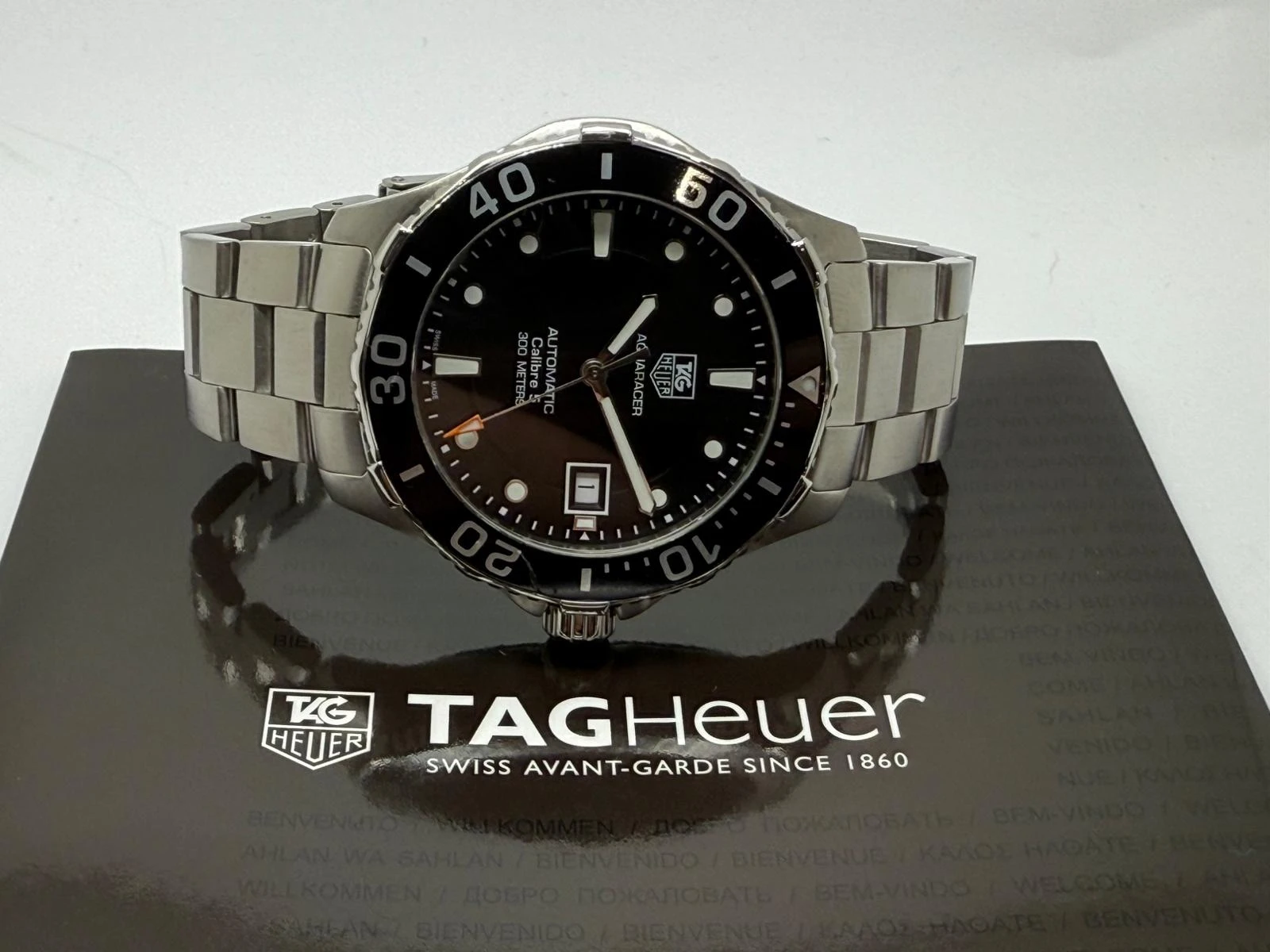 This 2014 TAG Heuer Aquaracer Calibre 5 Automatic, reference WAN2110.BA0822, features a robust stainless steel case and the reliable Calibre 5 automatic movement, making it a superb everyday sports watch.