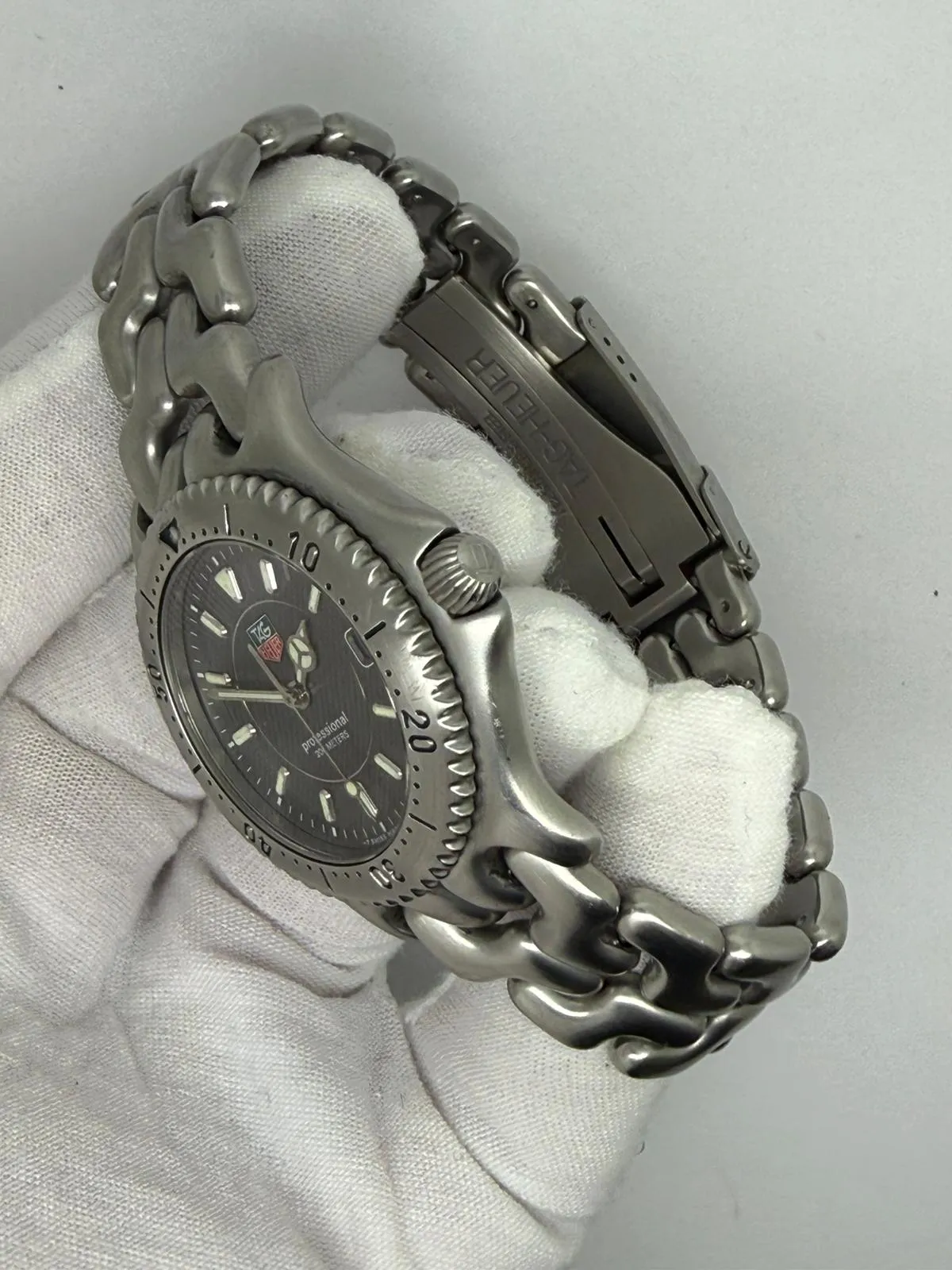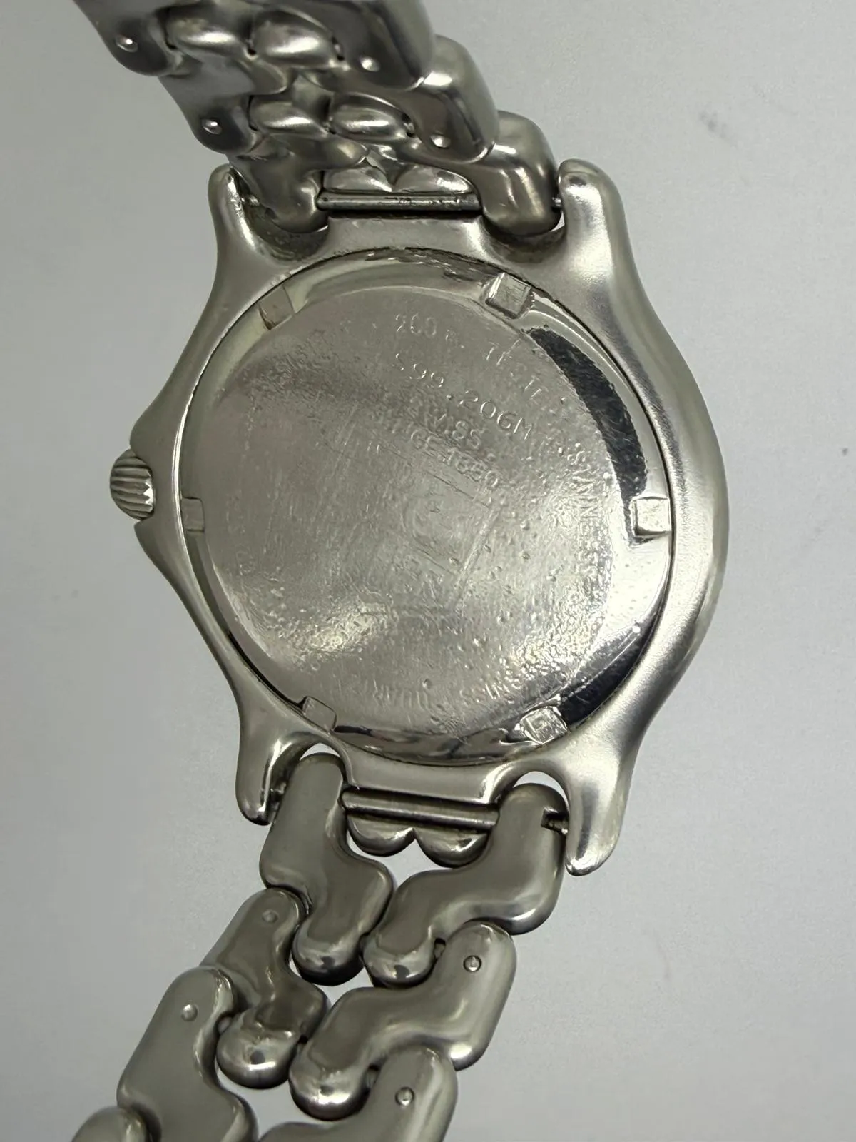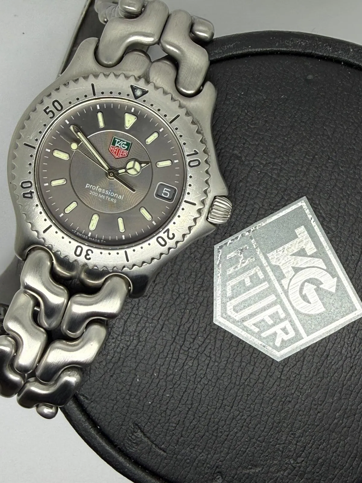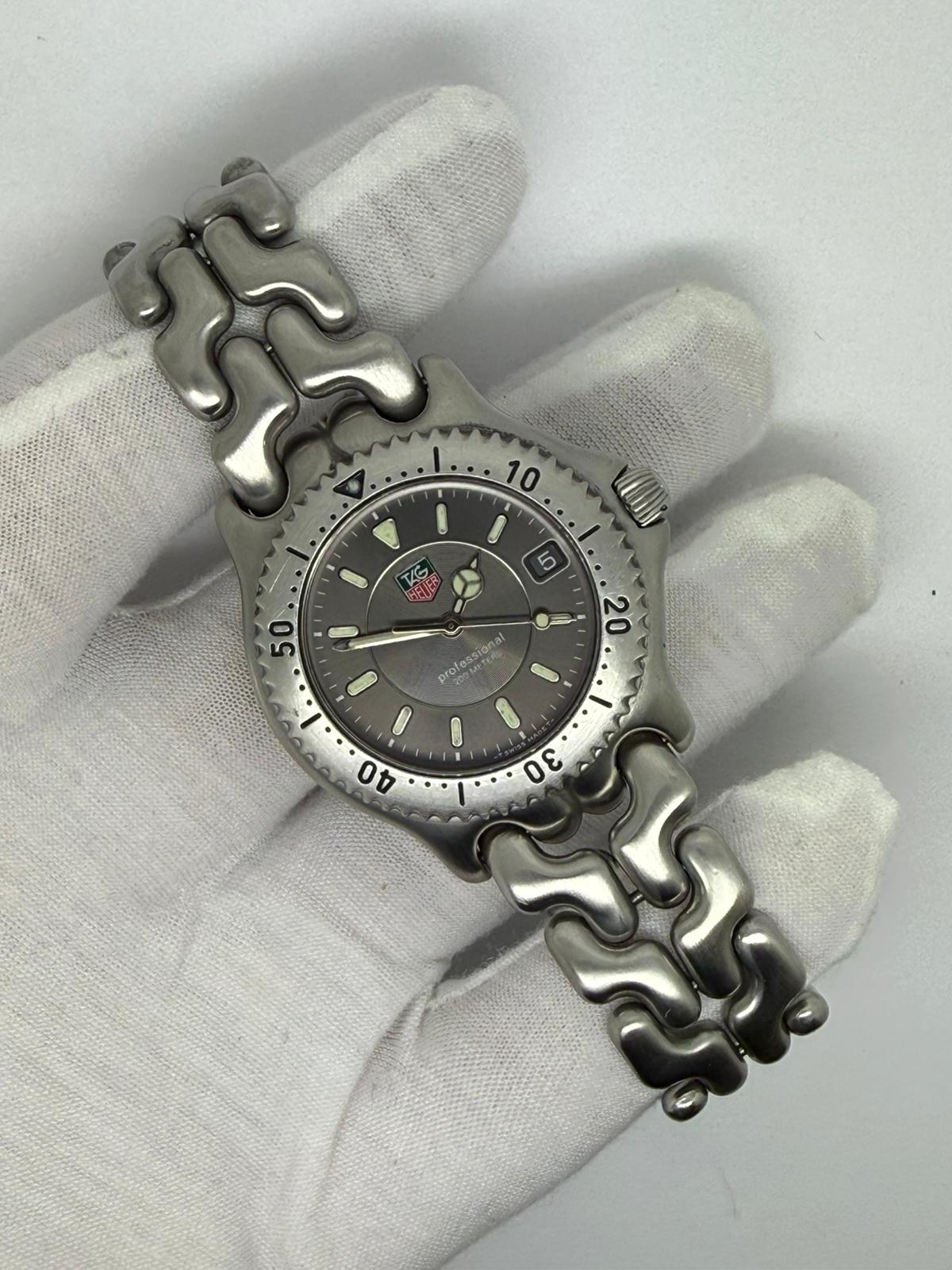 This 1990 TAG Heuer Professional 200, reference 599206M, features a robust 38mm stainless steel case designed for durability and everyday versatility. A classic vintage TAG Heuer sports watch, it embodies the brand’s strong heritage in professional dive and tool watches.