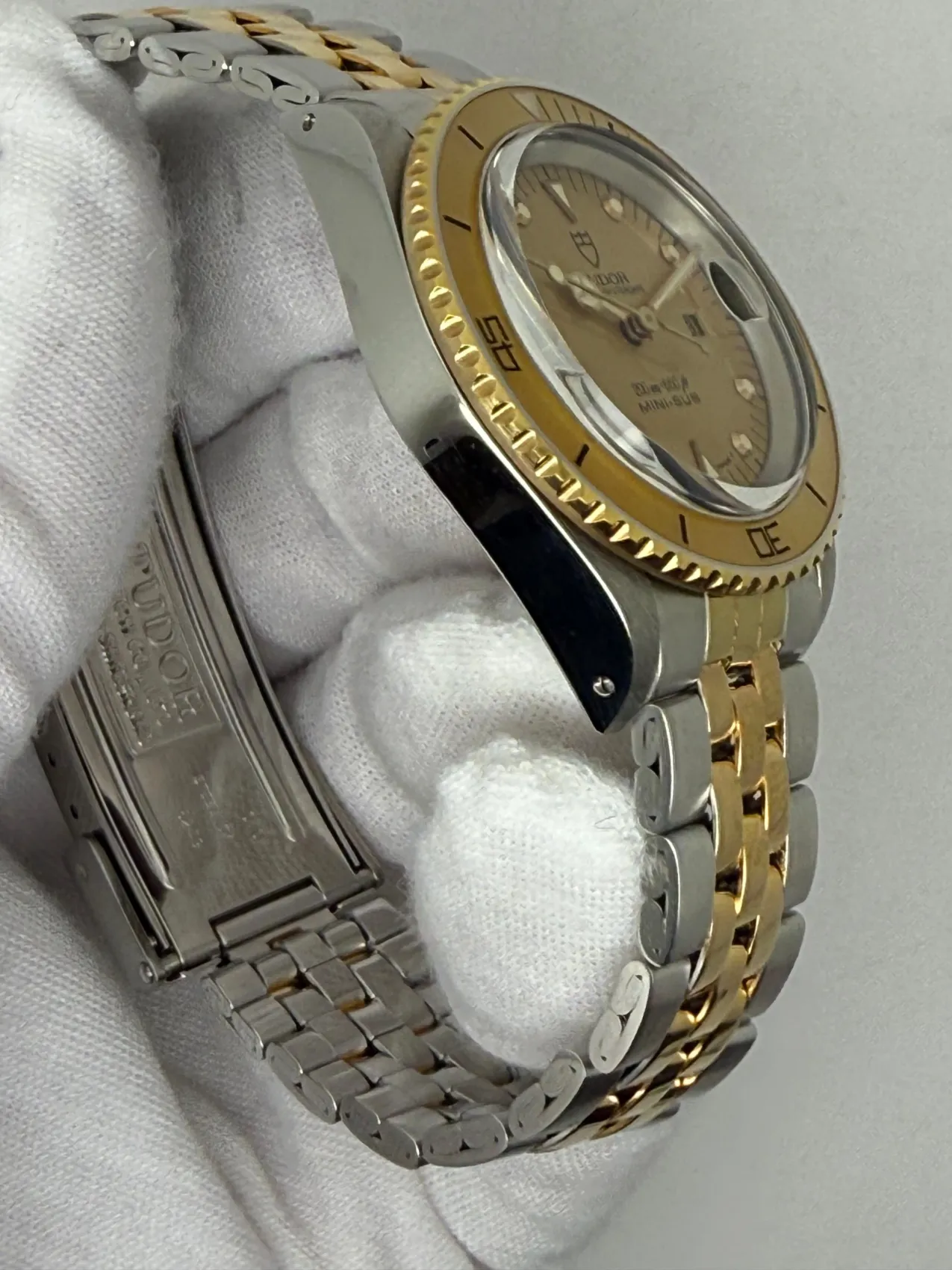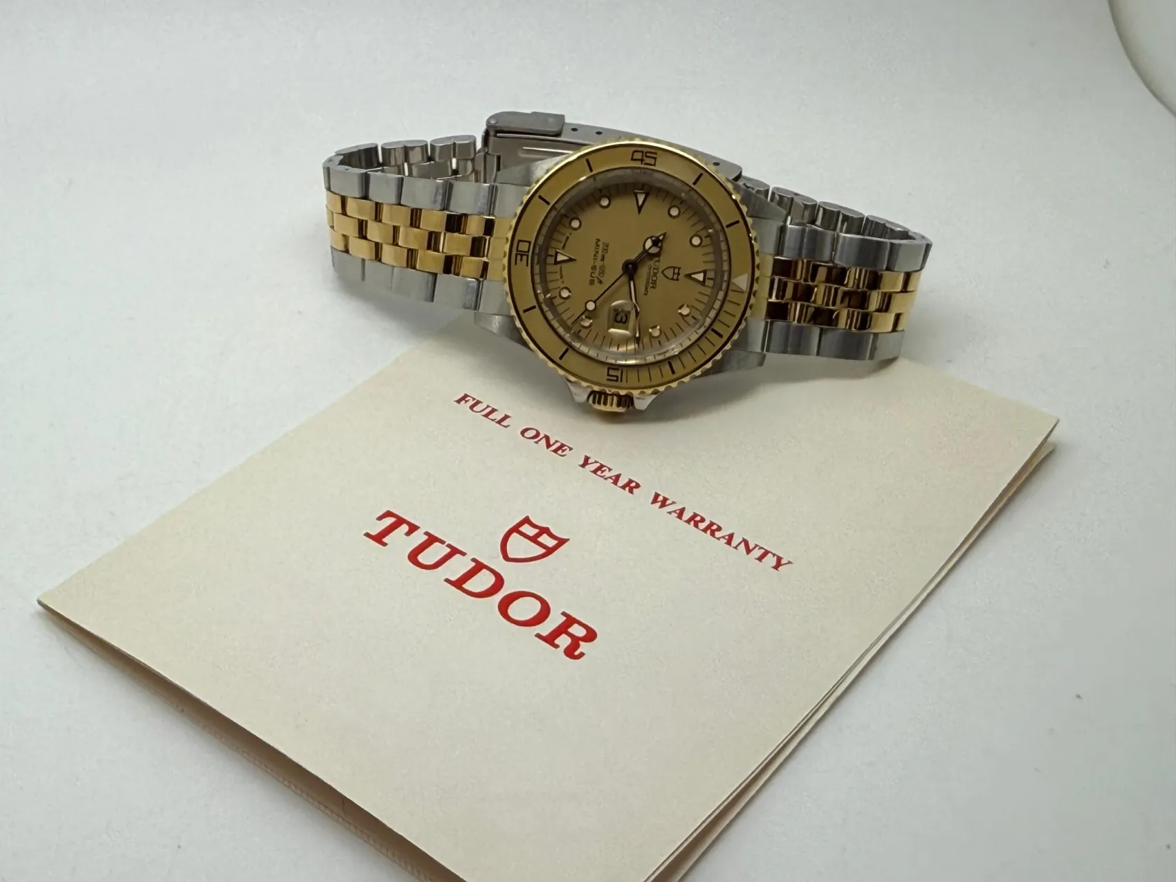 This rare 1991 Tudor Mini-Sub, reference 73091, is an unworn New Old Stock example — an exceptional find for collectors. The watch features a 33mm stainless steel case (excluding crown) and has been fully serviced, supplied with a two-year guarantee for complete reliability.